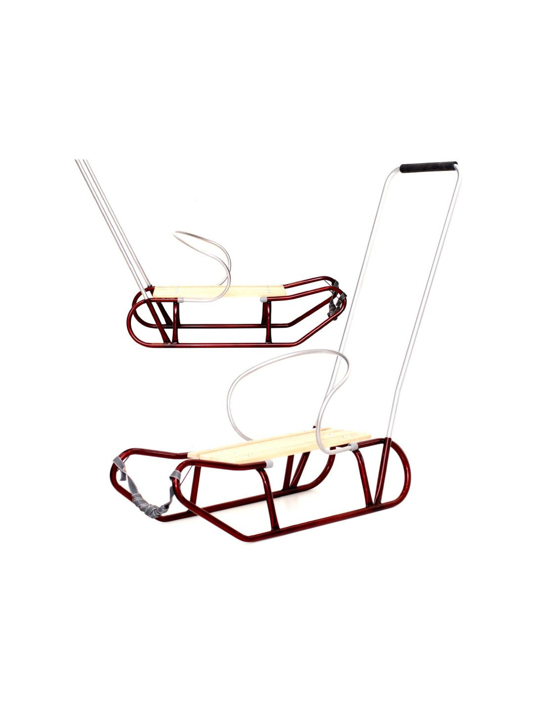 Lekka konstrukcja i prosty montaż pchacza sprawiają, że sanki są łatwe w obsłudze i transporcie.