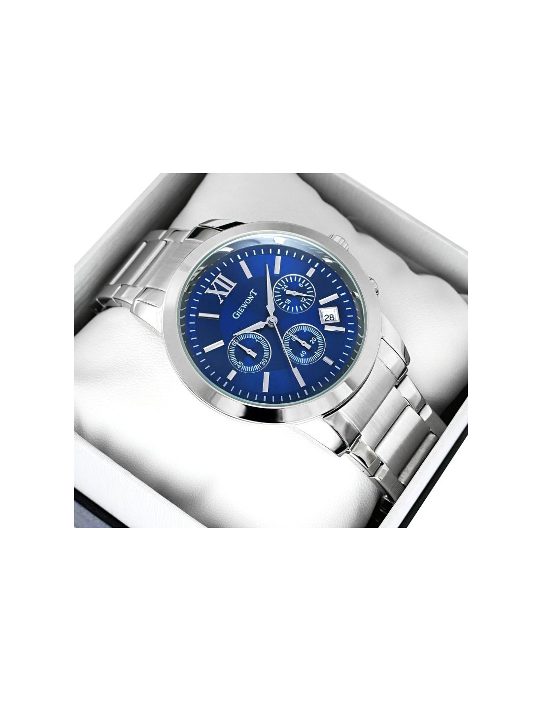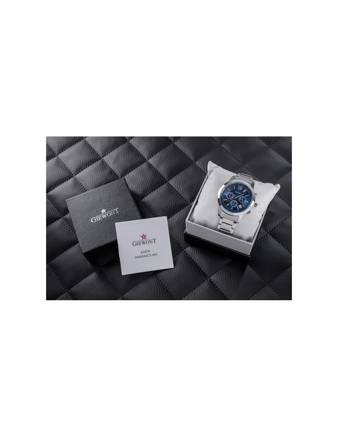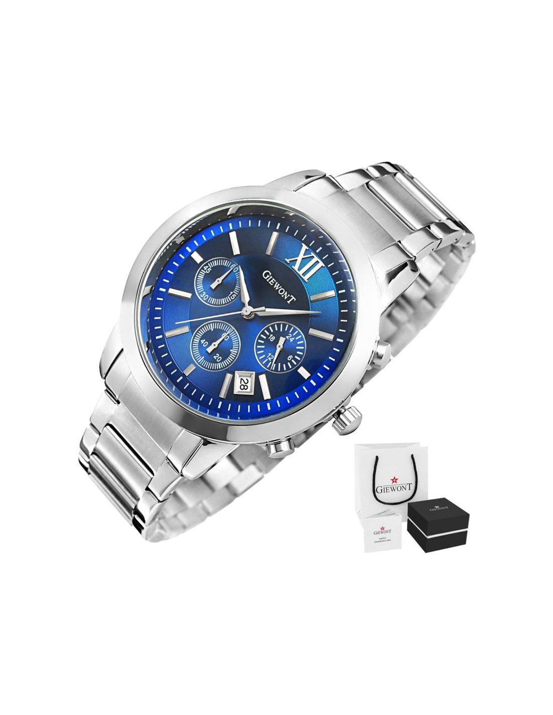Komfortowa, stalowa bransoleta to znakomite uzupełnienie tego zegarka. Rodzaj bransolety jest gwarancją solidności i wygody podczas codziennego użytkowania. Komfort dopełnia odpowiednia jakość stali, która komfortowo dopasowuje się do męskiego nadgarstka. Zapięcie sygnowane jest logiem marki Giewont, co podnosi prestiż zegarka i zapewnia wyjątkowość na tle innych marek zegarków.