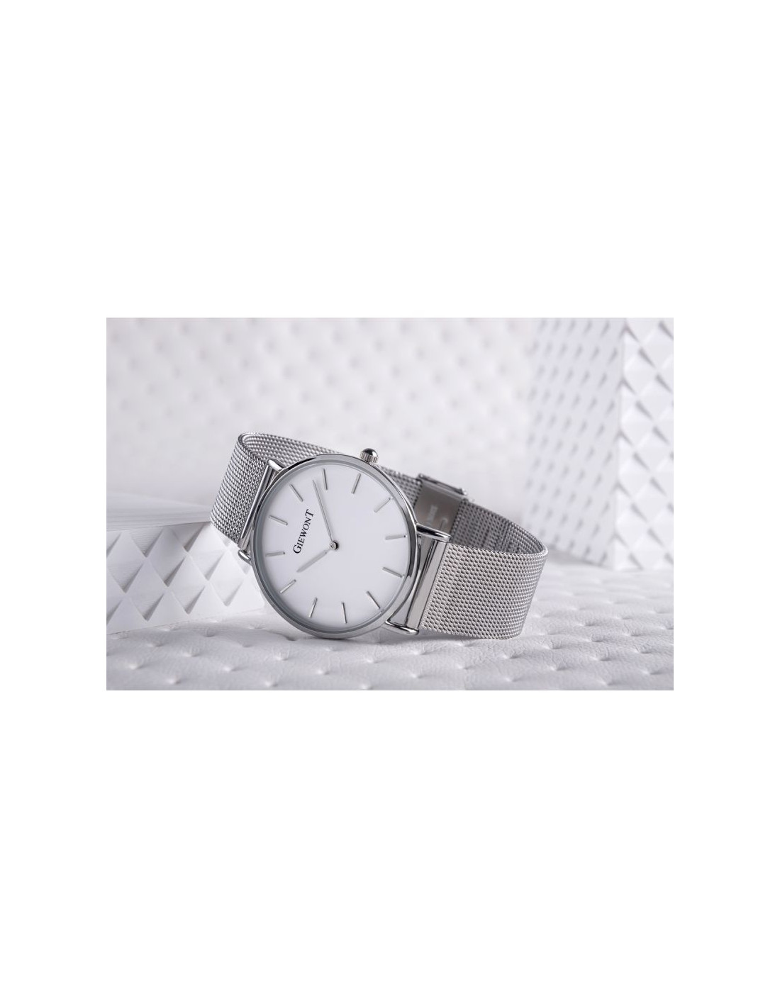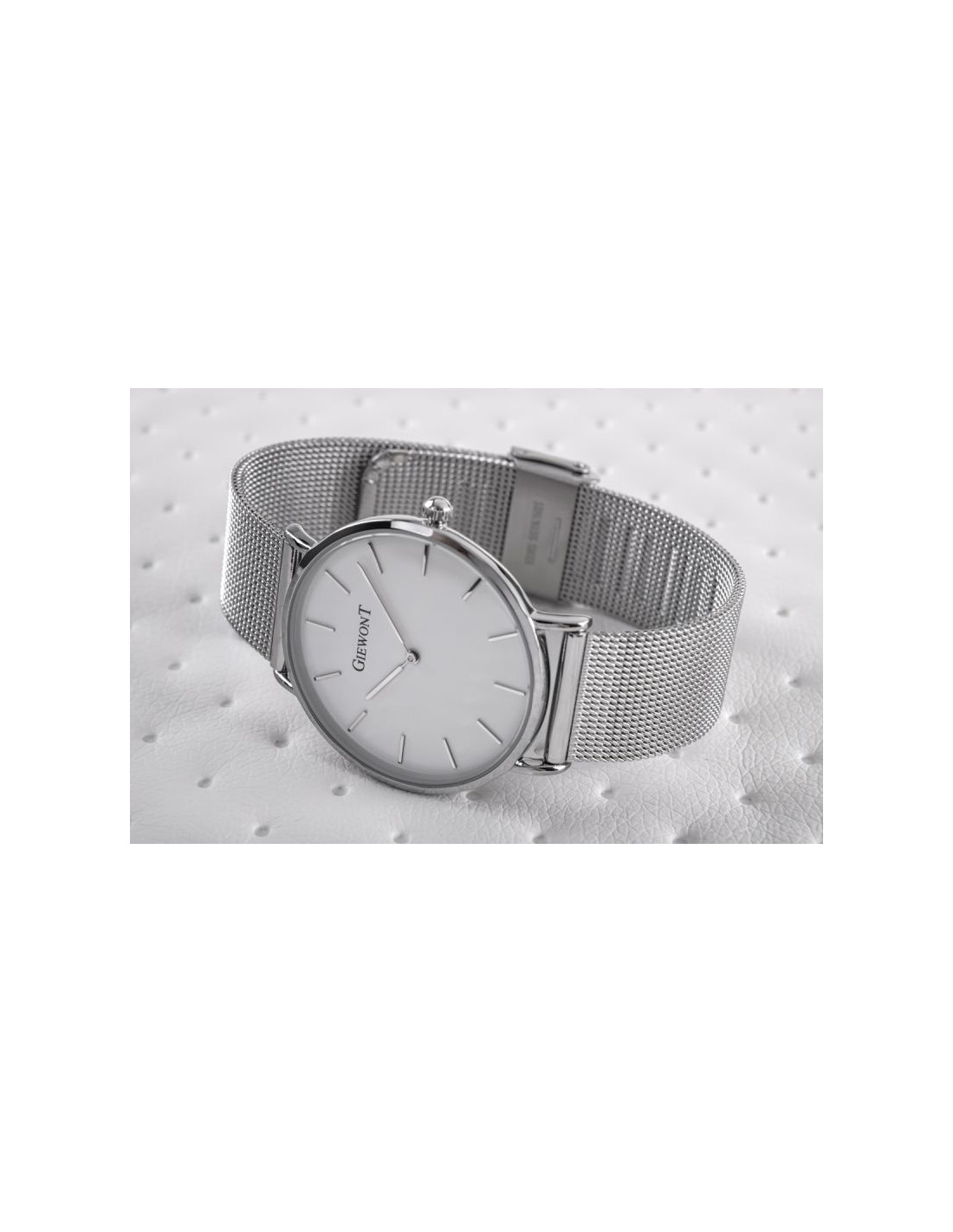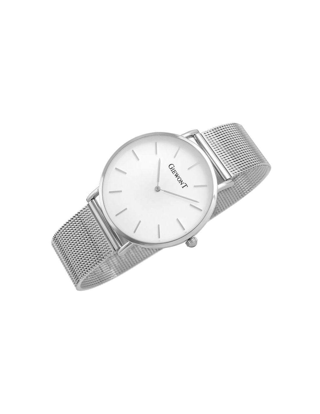 Komfortowa, stalowa bransoleta typu Mesh, to znakomite uzupełnienie tego zegarka. Rodzaj bransolety jest gwarancją solidności i wygody podczas codziennego użytkowania. Komfort dopełnia odpowiednia jakość stali, która komfortowo dopasowuje się do damskiego nadgarstka. Zapięcie sygnowane jest logiem marki Giewont, co podnosi prestiż zegarka i zapewnia wyjątkowość na tle innych marek zegarków.