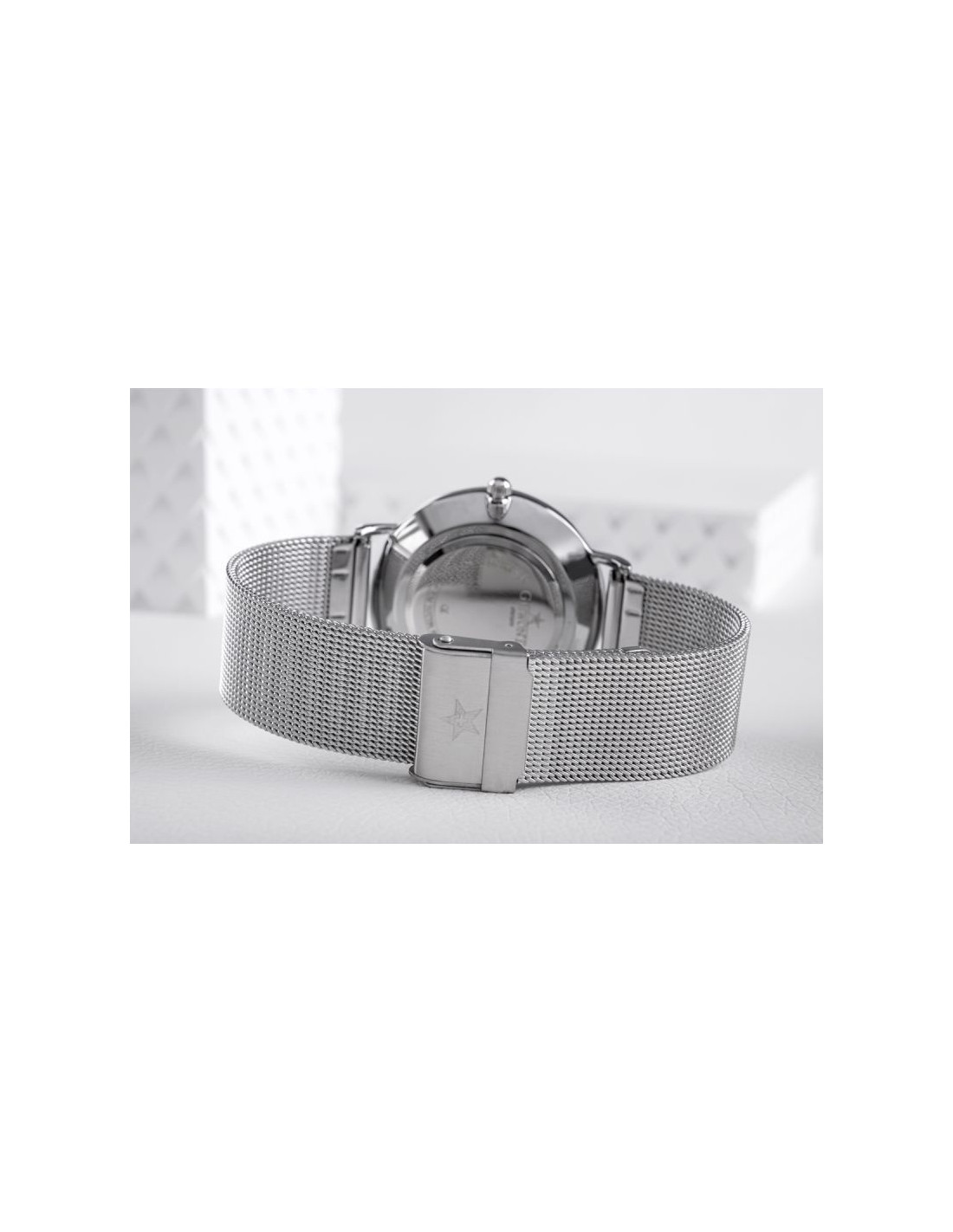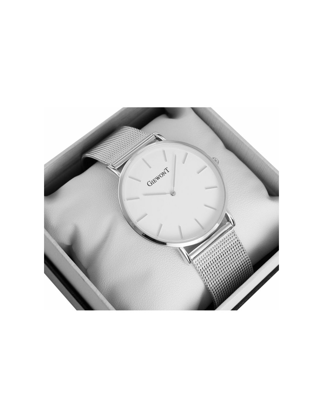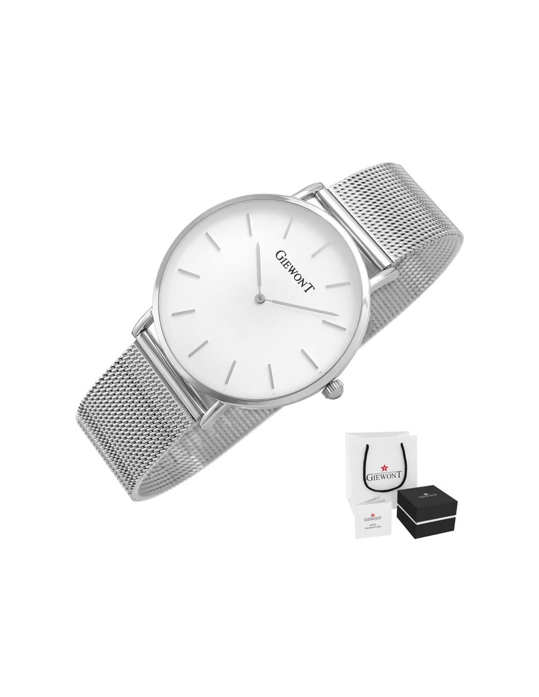 Komfortowa, stalowa bransoleta typu Mesh, to znakomite uzupełnienie tego zegarka. Rodzaj bransolety jest gwarancją solidności i wygody podczas codziennego użytkowania. Komfort dopełnia odpowiednia jakość stali, która komfortowo dopasowuje się do damskiego nadgarstka. Zapięcie sygnowane jest logiem marki Giewont, co podnosi prestiż zegarka i zapewnia wyjątkowość na tle innych marek zegarków.