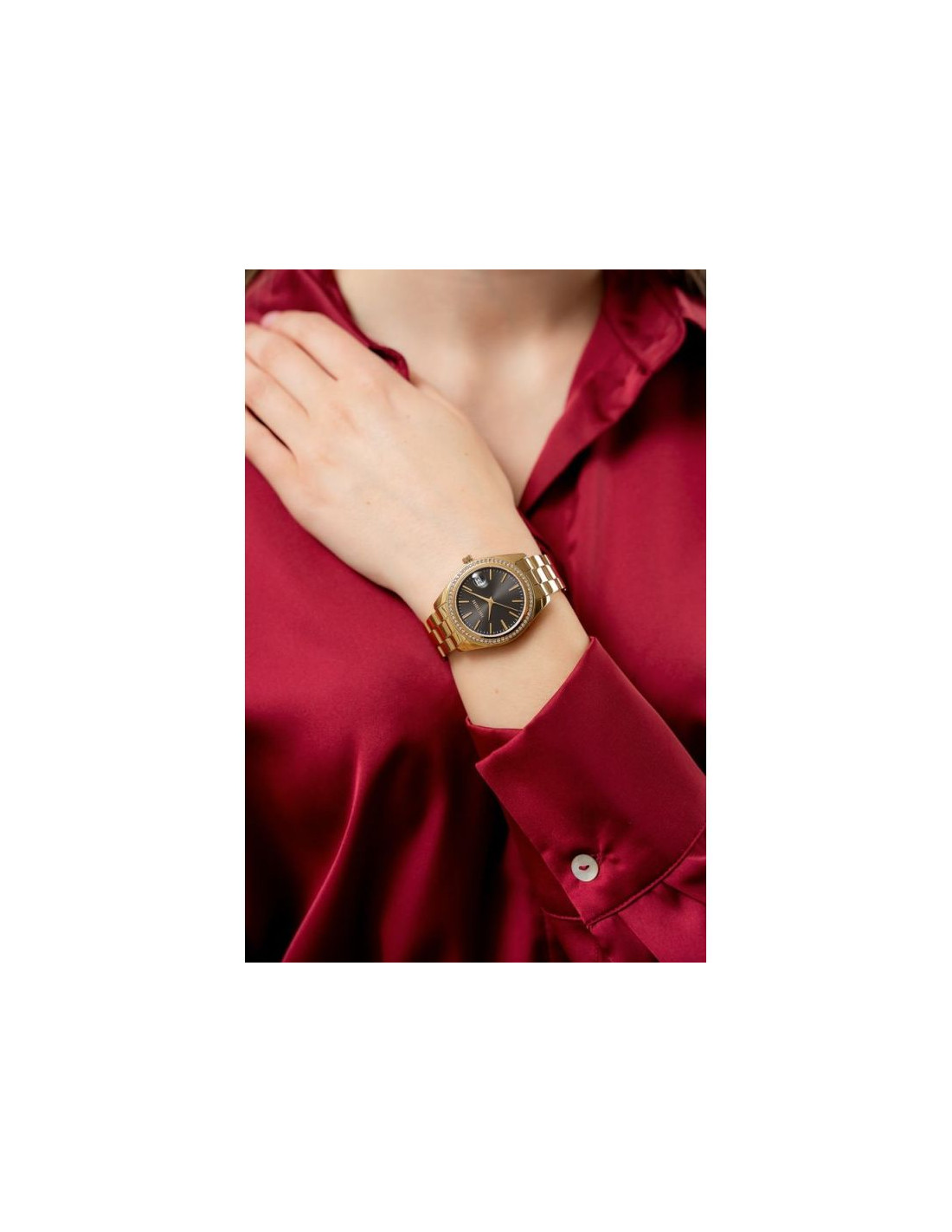 Jej gładka, delikatnie połyskująca powierzchnia harmonijnie oplata nadgarstek, zapewniając komfort noszenia przez cały dzień. Dziękiprecyzyjnemu wyprofilowaniu idealnie dopasowuje się do kobiecej dłoni, subtelnie podkreślając smukłość nadgarstka i dodając każdej stylizacji elegancji. Stal nierdzewna łączy w sobie zarówno wytrzymałość, jak i lekkość, co sprawia, że zegarek nosi się z wyjątkową wygodą. Design bransolety idealnie balansuje pomiędzy luksusem a codzienną prostotą, sprawiając, że ten model zegarka jest idealny zarówno na wieczorne wyjścia, jak i na co dzień. Całość dopełnia logo Paul Lorens na zapięciu bransolety.