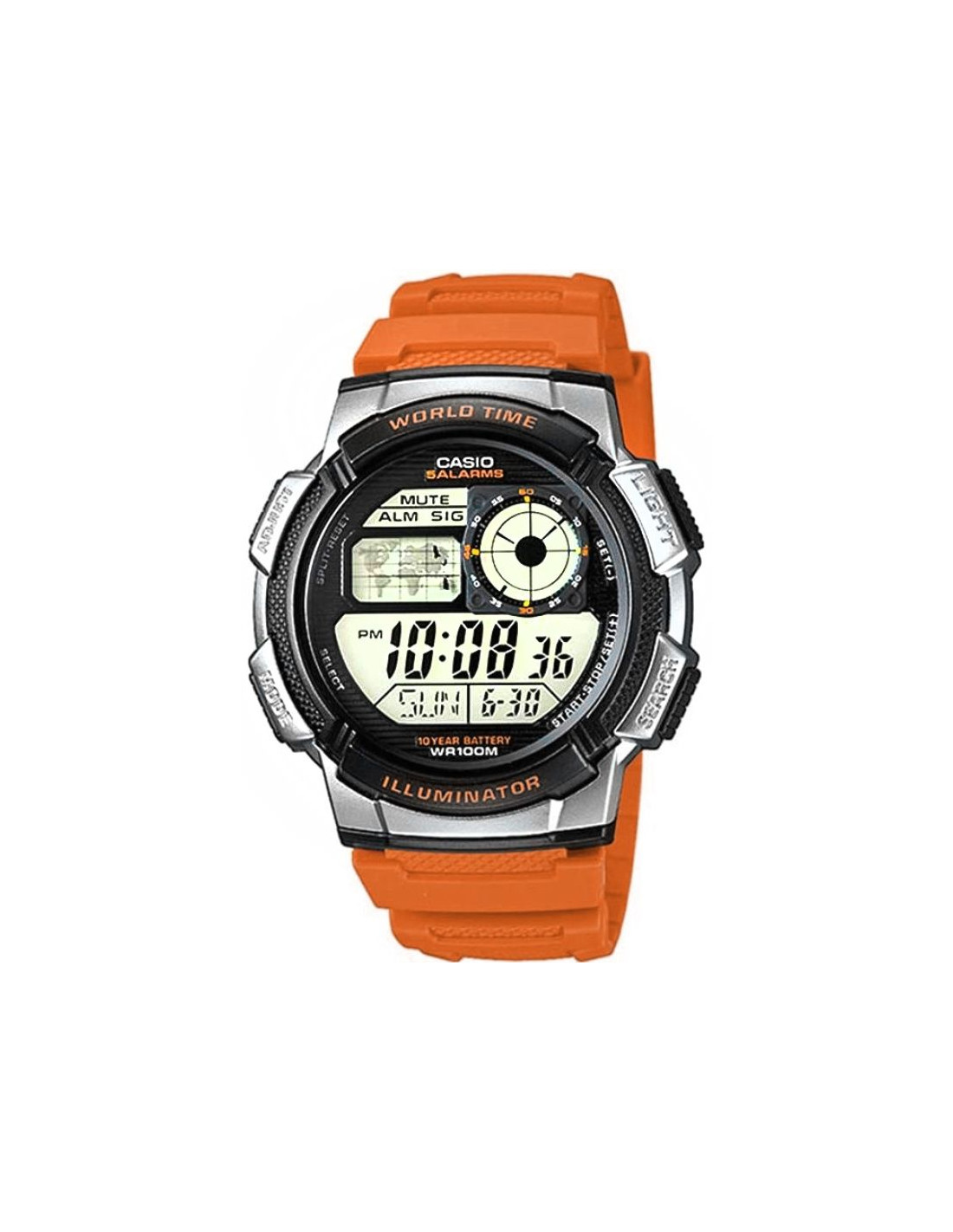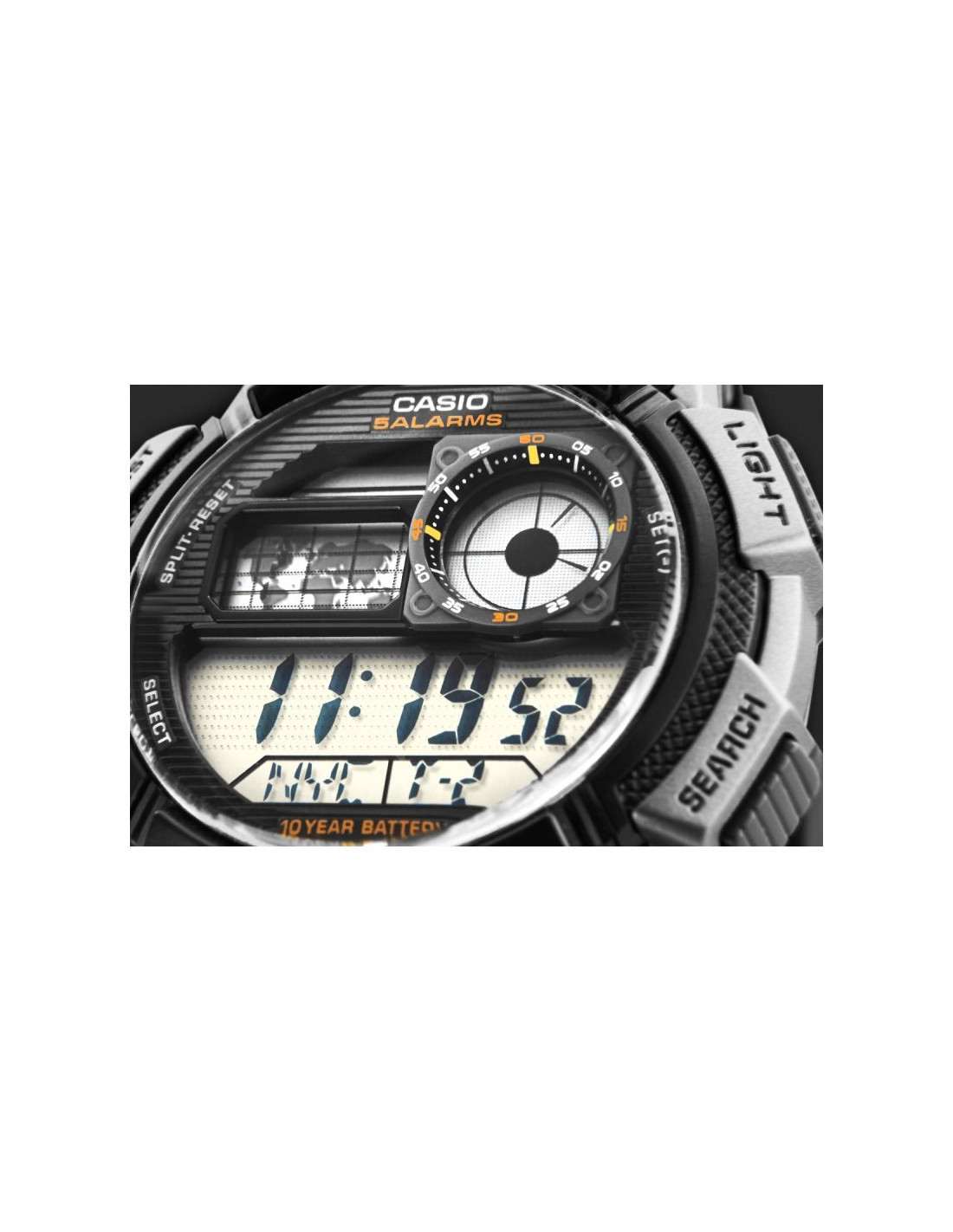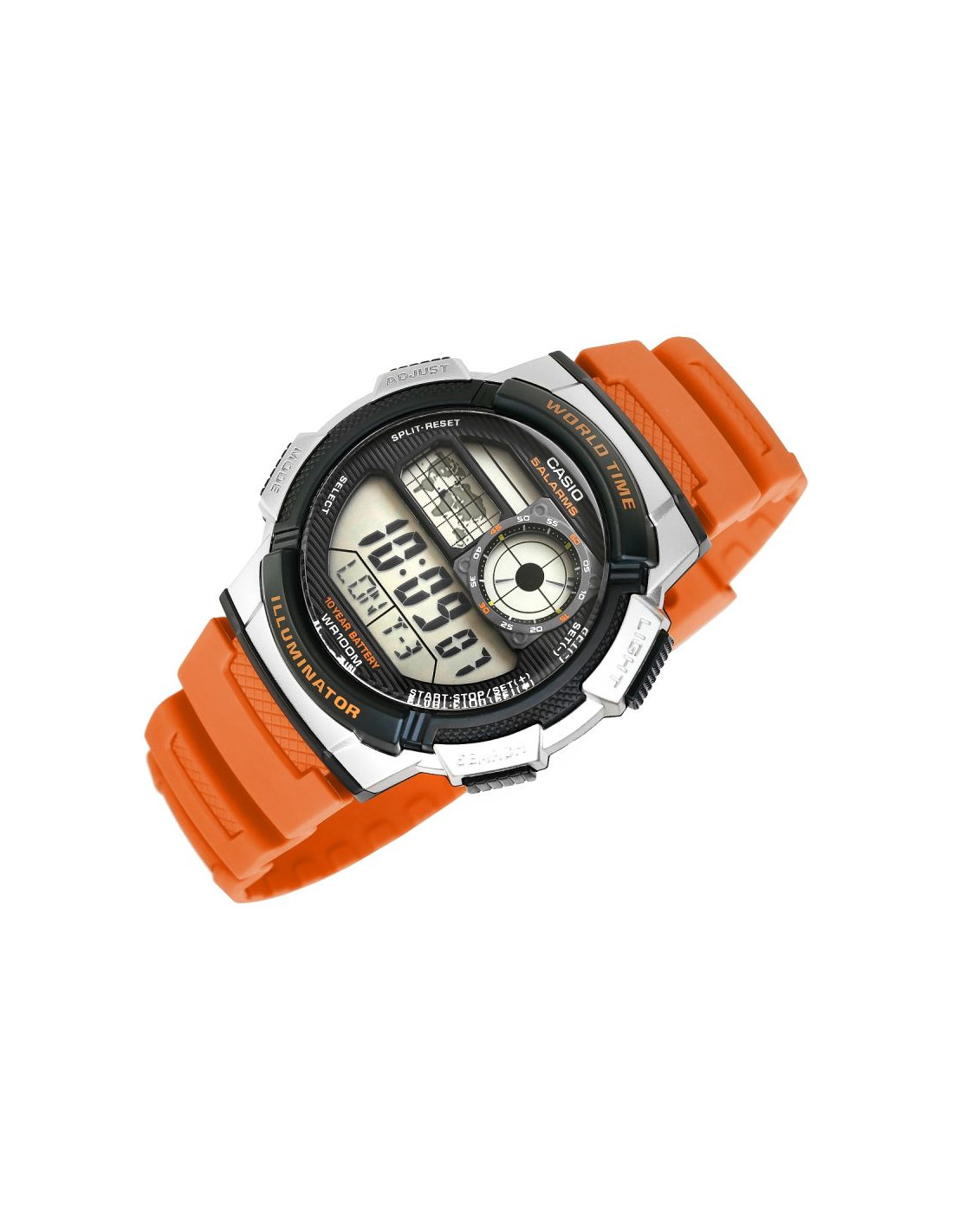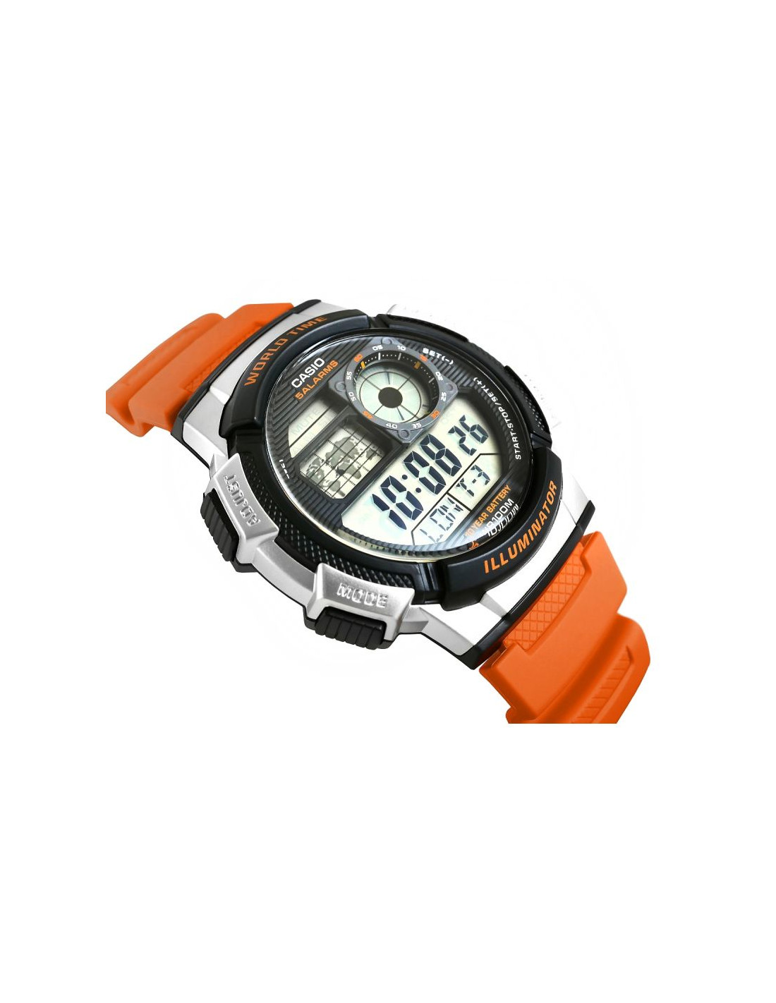 Model CASIO z Multi Time, światowym czasem, stoperem, alarmem x 5 i minutnikiem - a to wszystko 10 lat na jednej baterii. Casio AE-1000W to zegarek, który nadąża za Tobą - tarcza inspirowana kokpitem samolotu nadaje mu surowy, techniczny charakter, który podkreśla męski styl i dynamiczny tryb życia. Dzięki mapie świata i funkcji World Time możesz jednym rzutem oka sprawdzić czas w różnych strefach, co sprawia, że to idealny wybór dla podróżników i profesjonalistów pracujących na międzynarodową skalę. Wyświetlacz LC Analog sprawia, że zawsze masz pod ręką godzinę swojego miasta domowego, a wodoodporność do 100 metrów pozwala na swobodne użytkowanie zegarka w trudniejszych warunkach. To zegarek dla mężczyzn, którzy oczekują więcej – precyzji, trwałości i stylu.