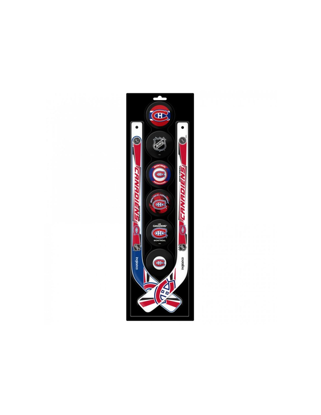 Zestaw do gry Inglasco NHL 6-pack Zestaw zawiera 6 piankowych krążków i dwa mini kije. Idealny dla hokeistów, którzy chcą wspierać swoją ulubioną drużynę NHL. Kije mają prostą łopatkę, więc gracze mogą grać każdą ręką! Każdy krążek piankowy ma inny projekt logo Twojej ulubionej drużyny NHL. Oficjalnie licencjonowany produkt NHL Kanada Długość wału 14 " (35,5 cm) Łopatka, Prosta Zawiera 2 x mini kije NHL z logo 6 x krążki piankowe NHL z logo