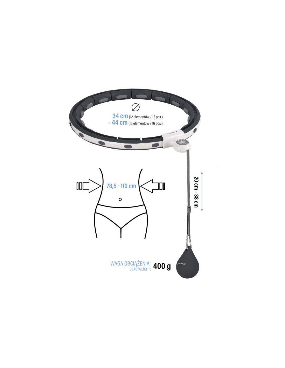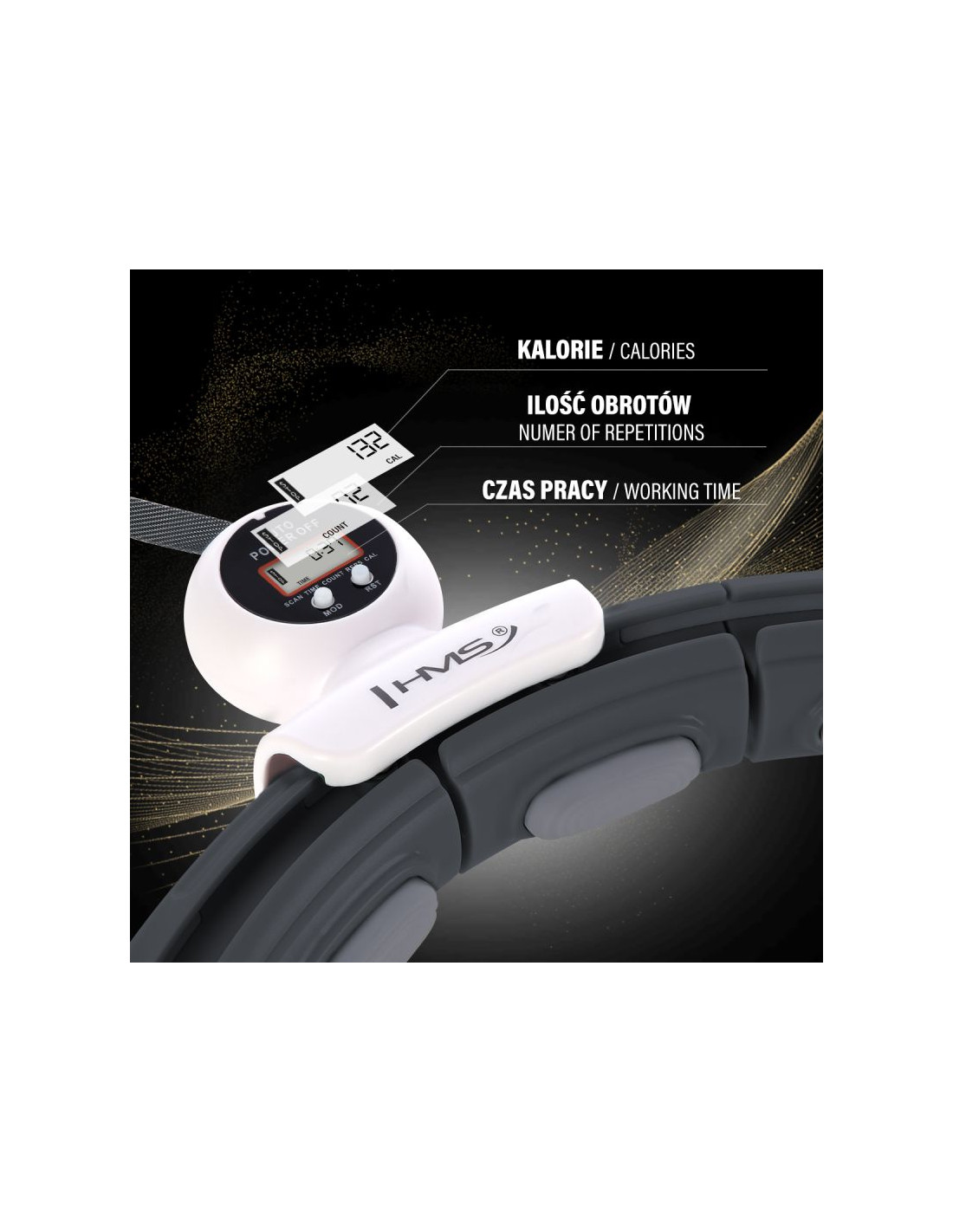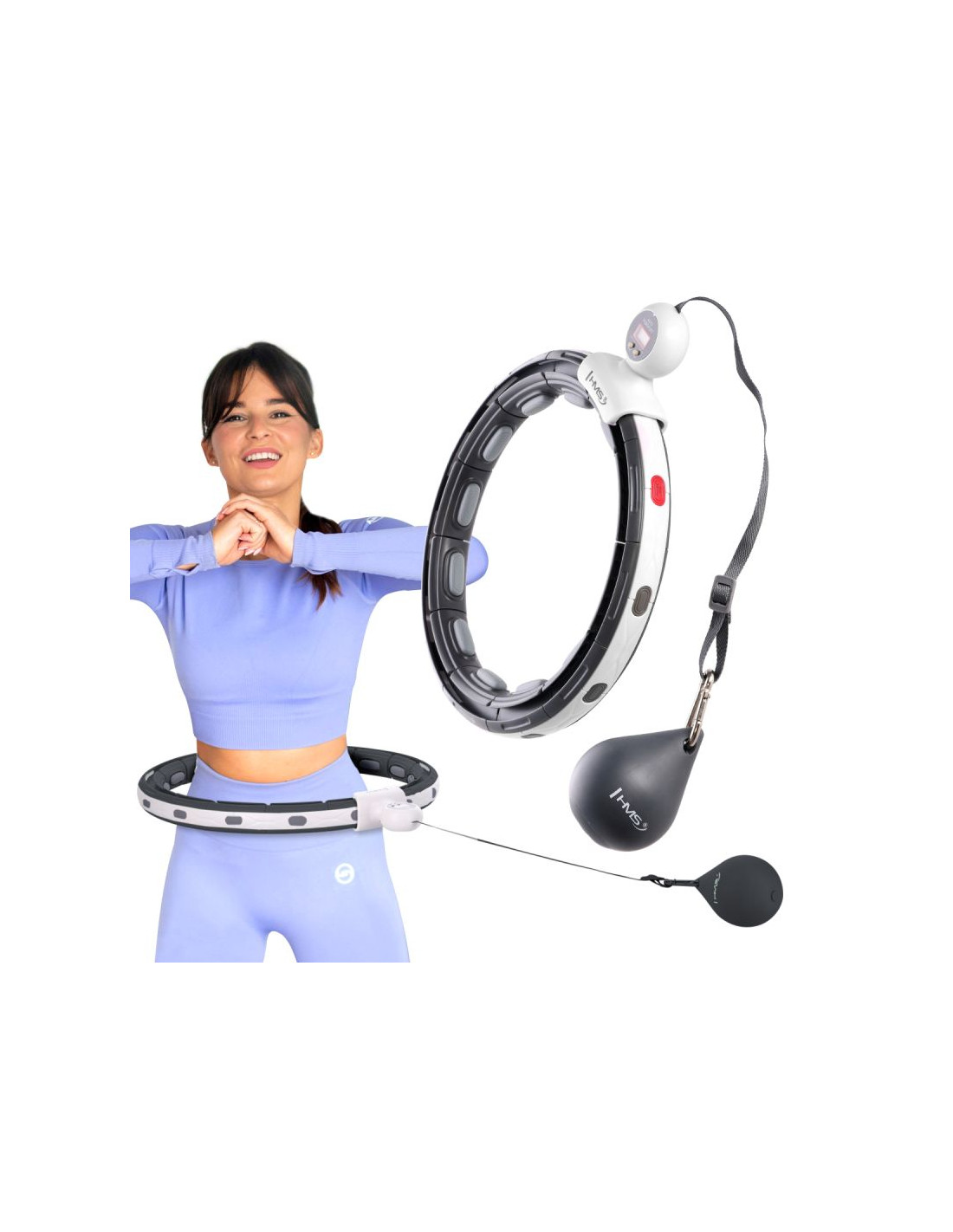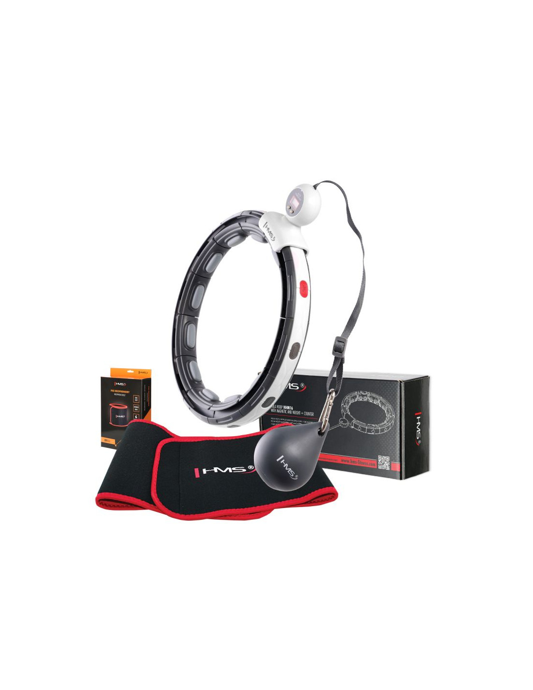 HMSZestaw hula hop magnetyczny black hhm15 z licznikiem hms + pas wyszczuplający br163 red