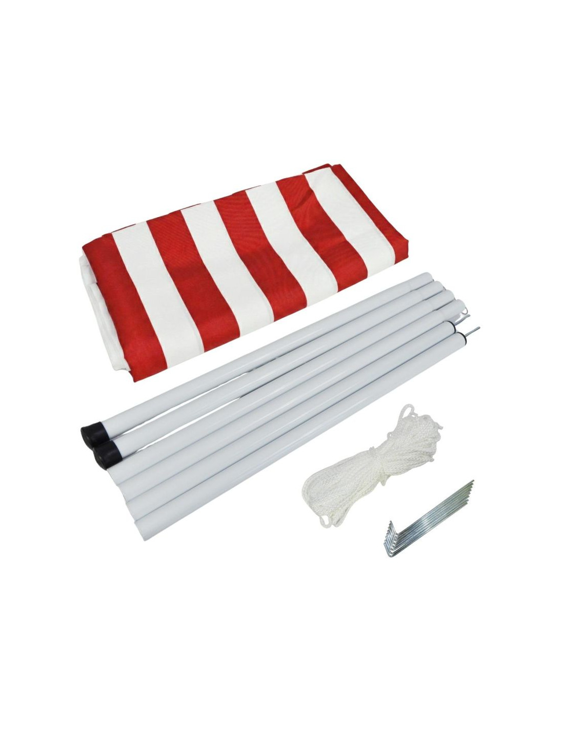 Dołączone do namiotu metalowe słupki i linki naprężające ze śledziami pozwolą rozłożyć żagiel w dowolnym miejscu i użyć w dowolnym celu.