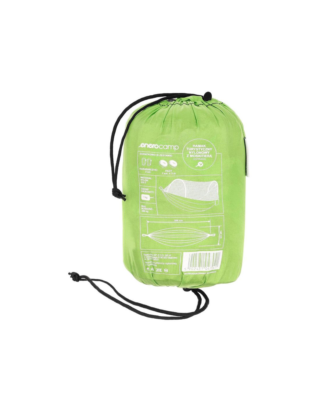 - W zestawie: hamak, karabińczyki 2 szt., 2 x taśmy do mocowania 3 m