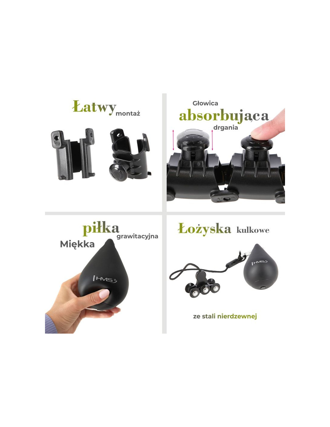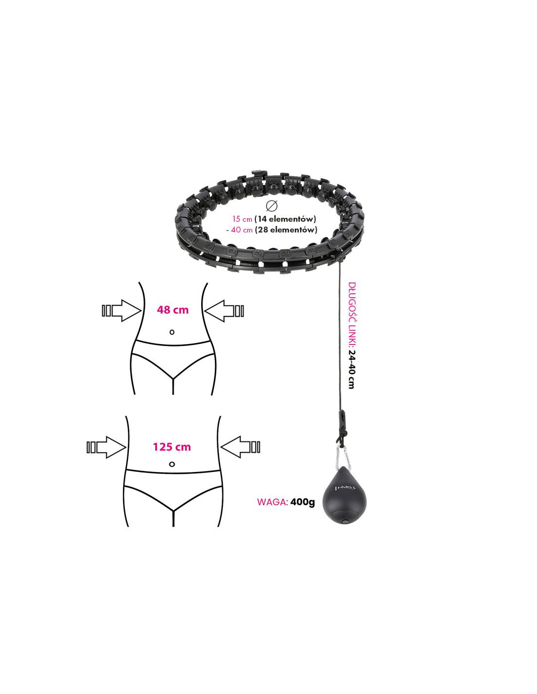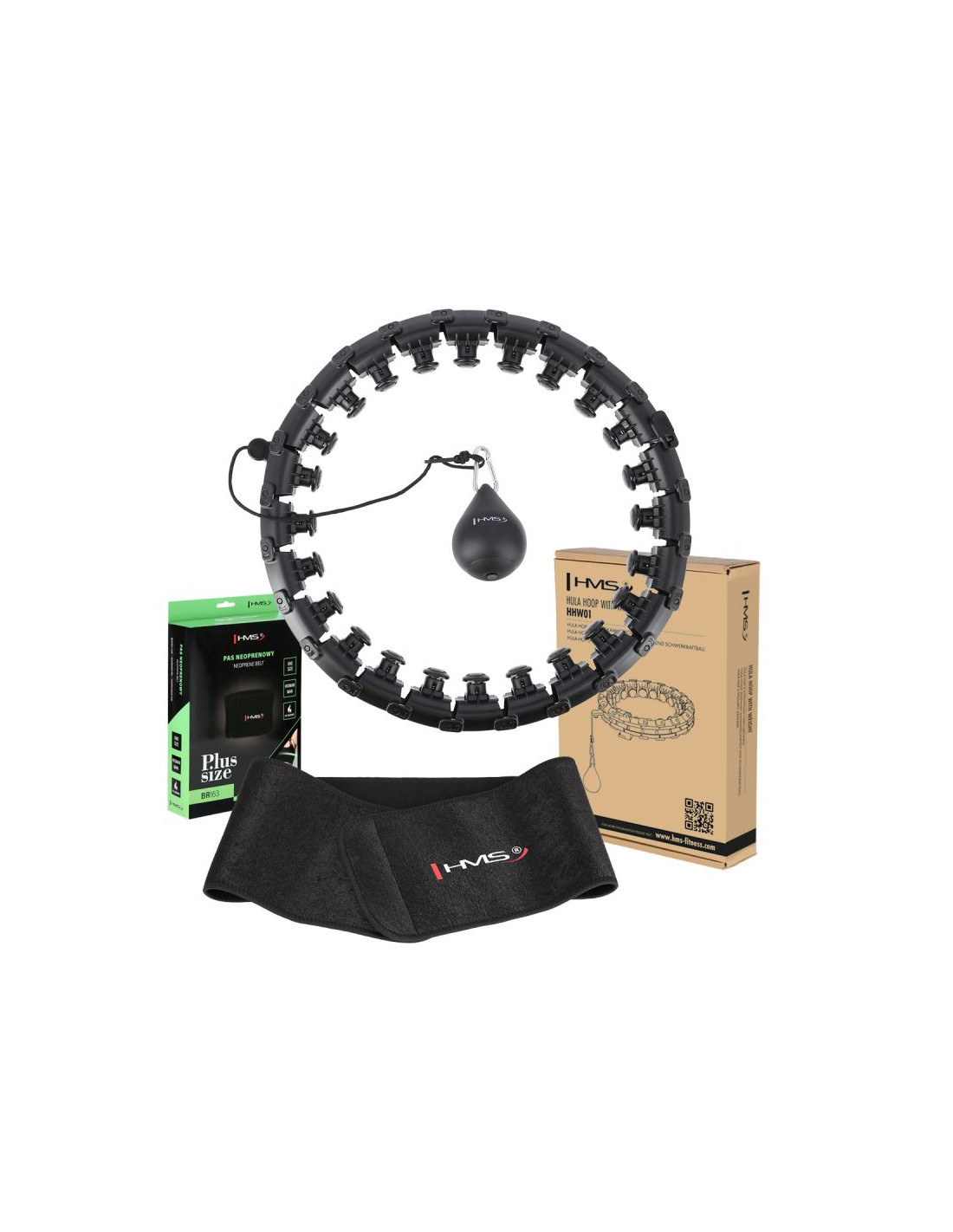 HMSZestaw hula hop hhw12 black z wypustkami i obciążnikiem hms + pas br163 black plus size