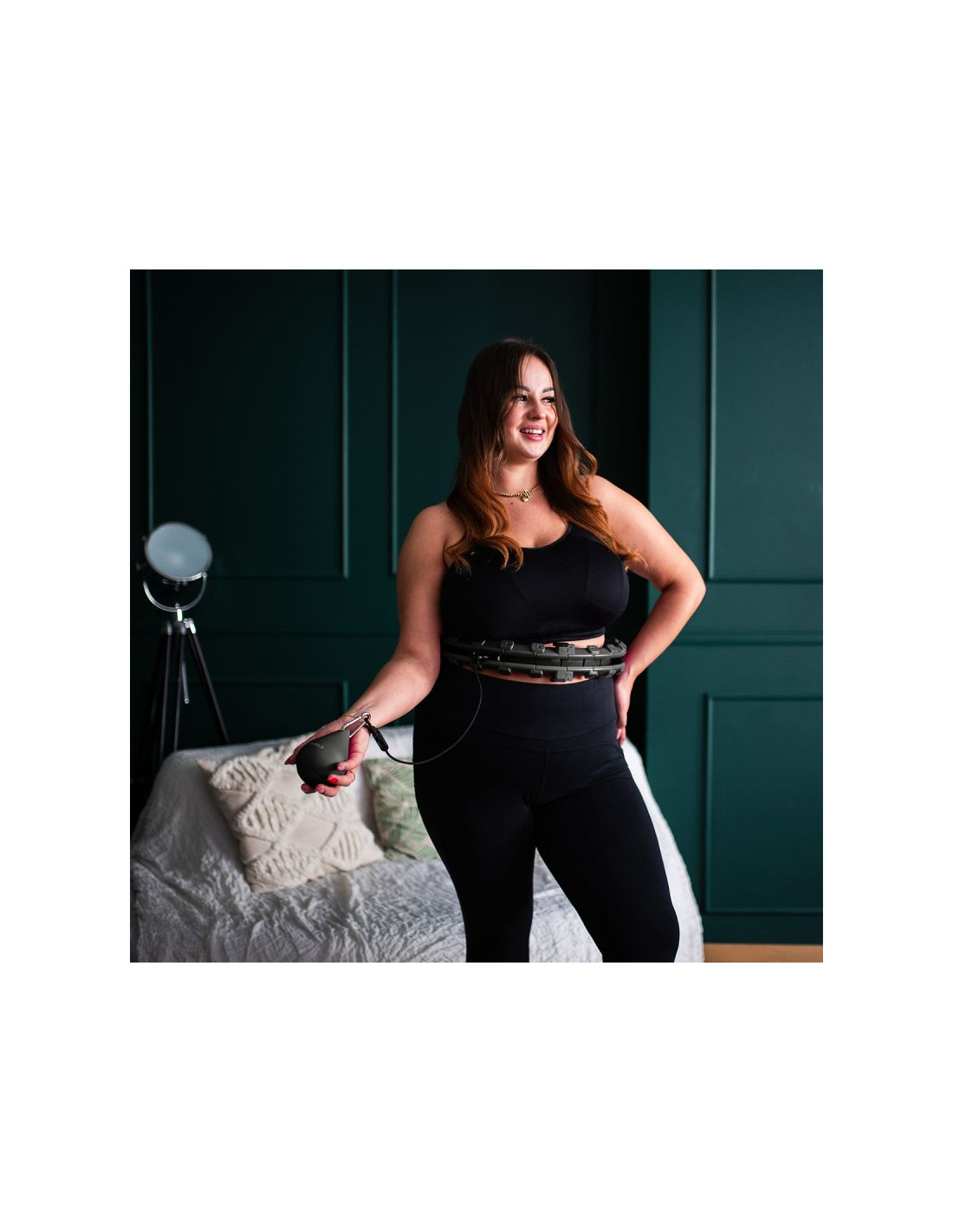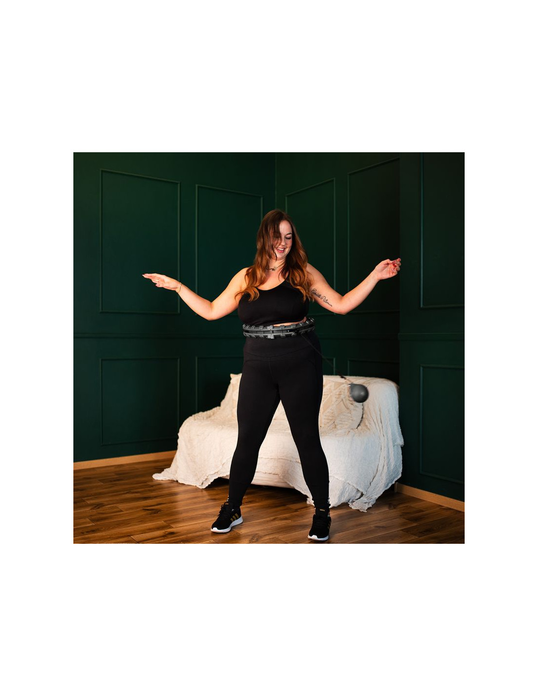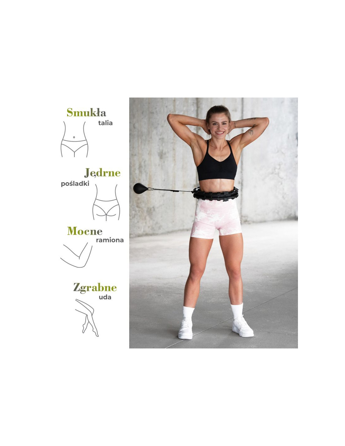 Zestaw hula hop hhw12 black z wypustkami i obciążnikiem hms + pas br163 black plus size