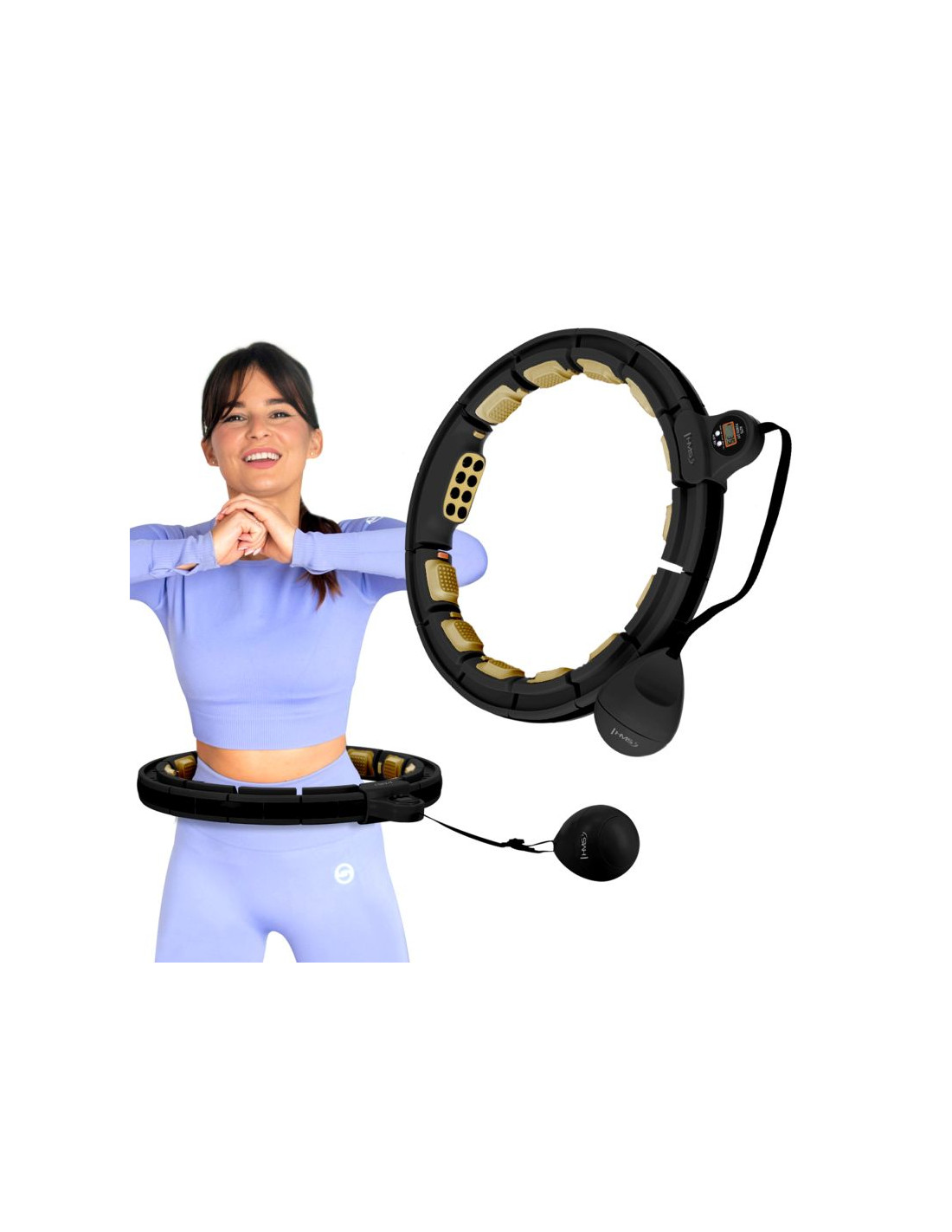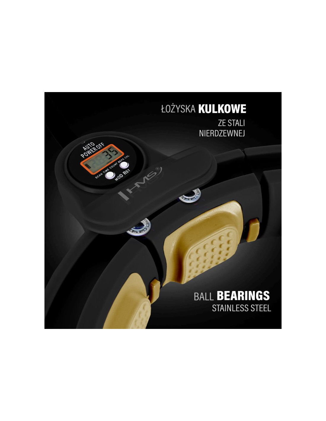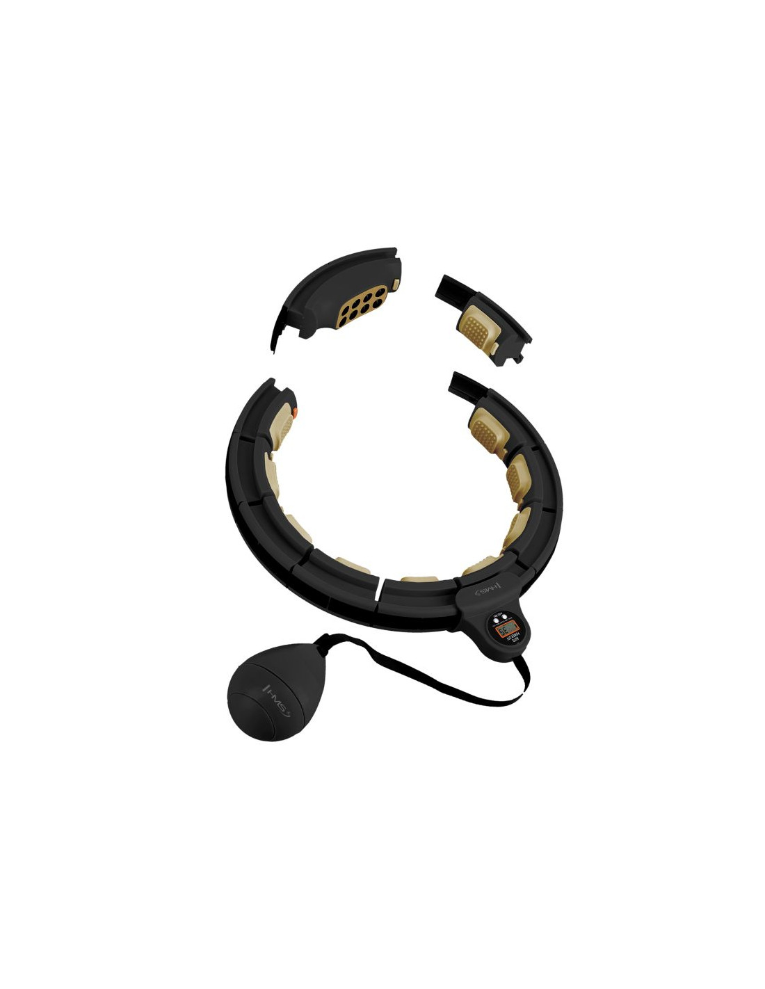 HMSHhm13 new hula hop black/gold z magnesami i obciążnikiem + licznik hms