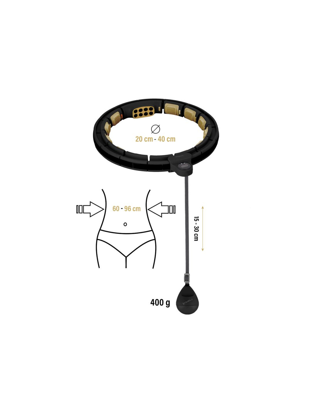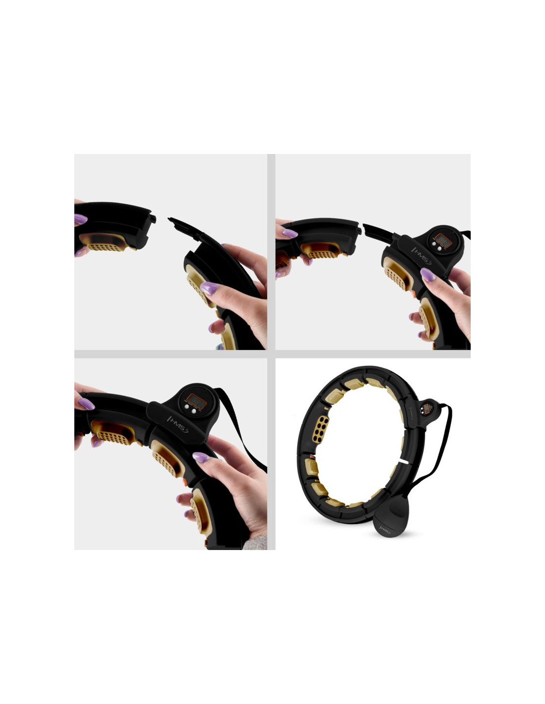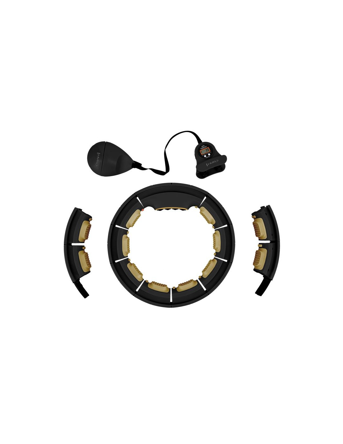 Hhm13 new hula hop black/gold z magnesami i obciążnikiem + licznik hms