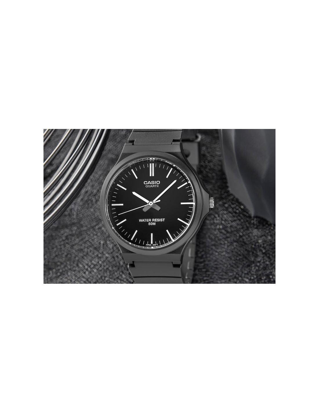 Męski model zegarka CASIO MW-240 łączący minimalizm, funkcjonalność i komfort w męskim wydaniu. Lekka konstrukcja zegarka (zaledwie 35g!) sprawia, że jest niemal niewyczuwalny na nadgarstku. Elastyczny, matowy pasek z żywicy dopasowuje się do ruchów, jest odporny na zużycie i gotowy na każdą sytuację – od spotkań po trening. Duże kontrastowe indeksy pozwalają sprawdzić godzinę w mgnieniu oka. Wytrzymałe szkiełko Resin Glass gwarantuje odporność na codzienne użytkowanie, a wodoodporność 5 BAR daje pewność, że zachlapania, deszcz czy szybki prysznic nie będą problemem.