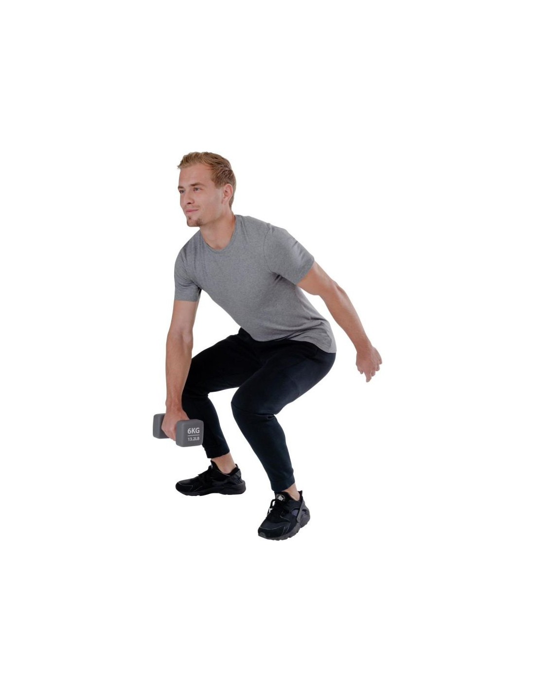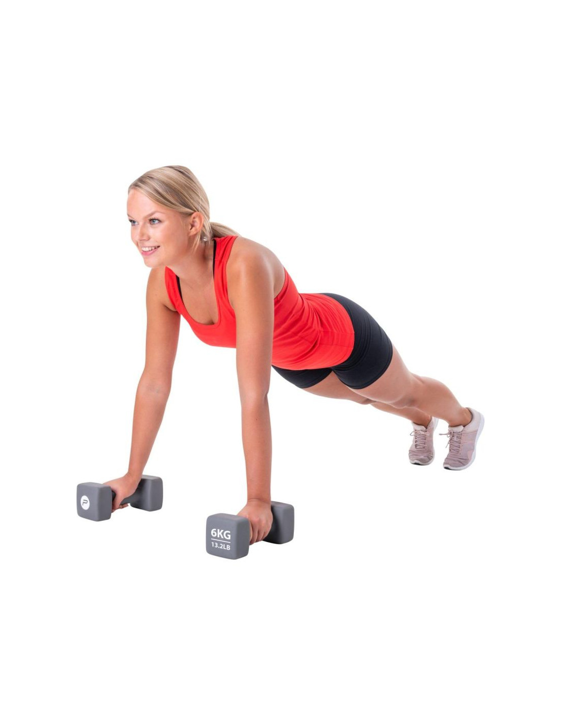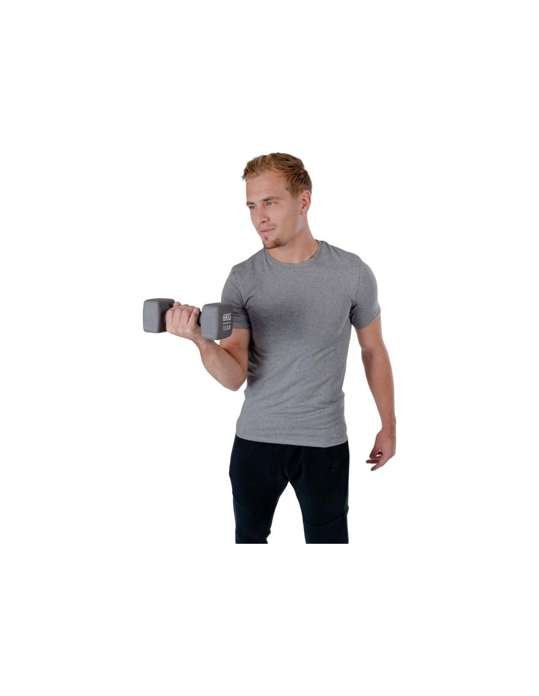Neopren, którym jest pokryta hantla, tłumi dźwięki i chroni podłoże przed uszkodzeniem, a charakterystyczny kształt zabezpieczy hantle przed turlaniem się po podłodze.