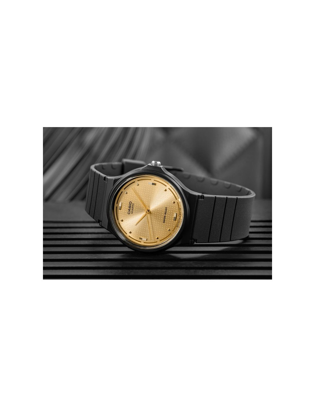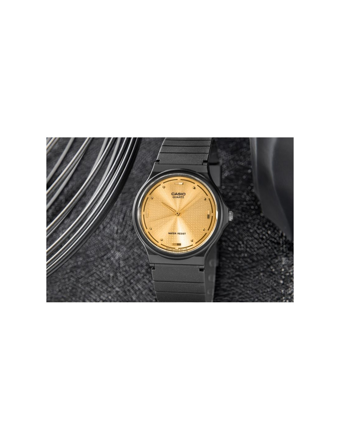 Odkryj połączenie klasycznej prostoty i nowoczesnego designu, które sprawia, że zegarek doskonale wpisuje się w elegancki, ale także codzienny styl. Jego smukła konstrukcja i kompaktowa tarcza sprawiają, że doskonale dopasowuje się do nadgarstka, a matowy, giętki pasek z żywicy zapewnia niezrównany komfort noszenia – miękki, elastyczny i odporny na codzienne wyzwania. Złote indeksy w postaci prostokątów i subtelnych punktów harmonijnie komponują się z ciepłym odcieniem złotych wskazówek, tworząc spójną i wyrafinowaną estetykę. Waga to zaledwie 20 gram!