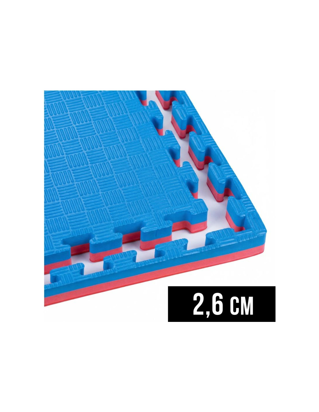 Mata sportowa "puzzle" dzięki swojej konstrukcji umożliwia szybki montaż tworząc matę o dowolnych wymiarach. Maty są dwustronne (czerwony-niebieski), dzięki czemu możesz wyznaczać za ich pomocą obszary treningowe/pole walki. Dzięki dużym rozmiarom (1x1m) możesz szybko i wygodnie przygotować nawet duże powierzchnie treningowe.