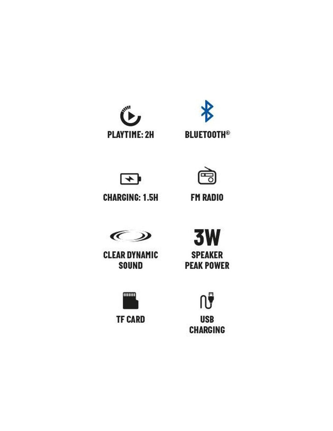 - Czas działania 2 godzin (przy głośności na poziomie 50%)