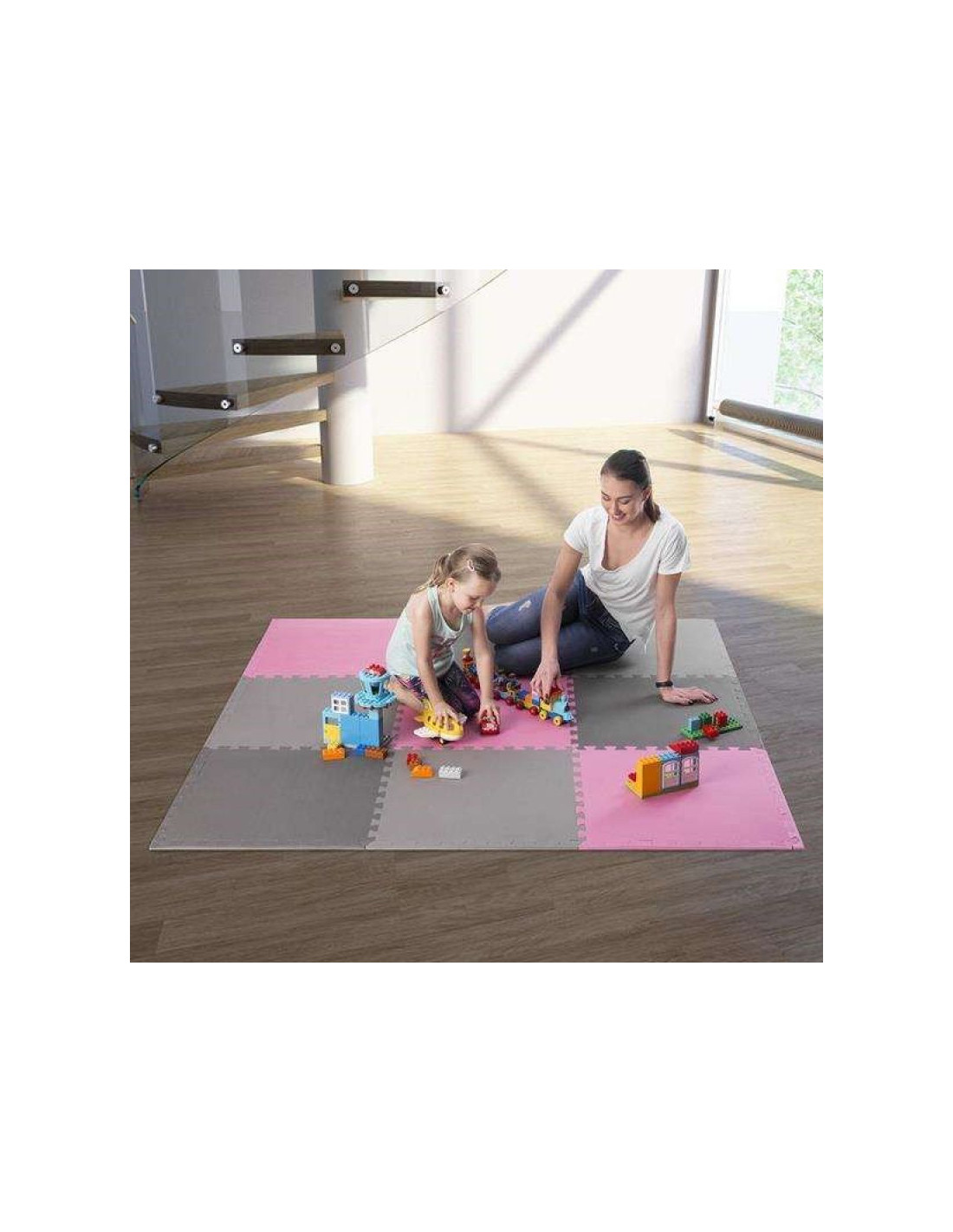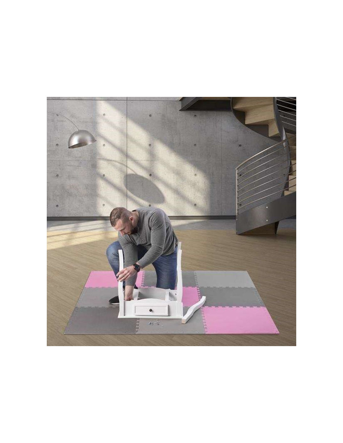 Mata puzzle multipack one fitness mp10 różowo-szare 9 elementów 10 mm