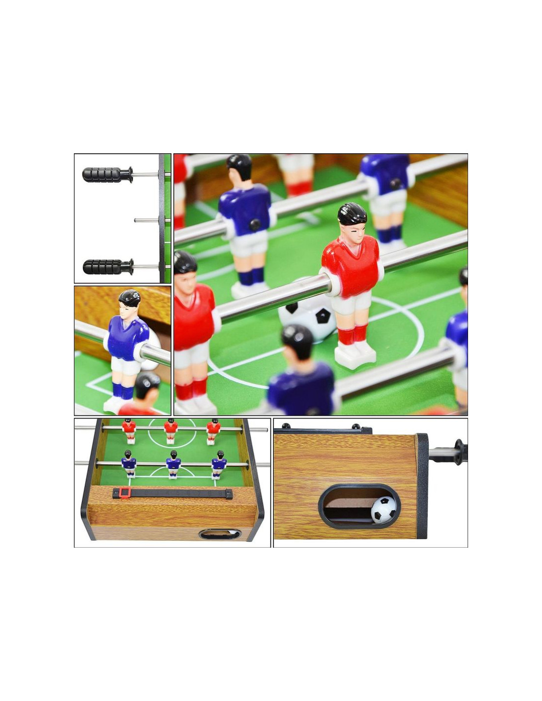 Solidna konstrukcja z płyty MDF zapewnia trwałość, a laminowane wykończenie dodaje elegancji i ułatwia czyszczenie. Figury piłkarzyków wykonane z trwałego tworzywa sztucznego gwarantują długie godziny zabawy.