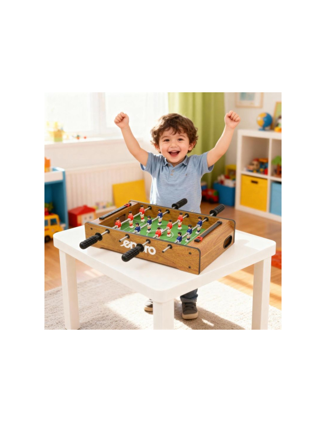 Dzięki niewielkim wymiarom stół można łatwo przenosić i przechowywać, co czyni go idealnym do gry w różnych miejscach. Piłkarzyki możesz zabrać na przyjęcia do znajomych, wakacje czy do domku letniskowego.