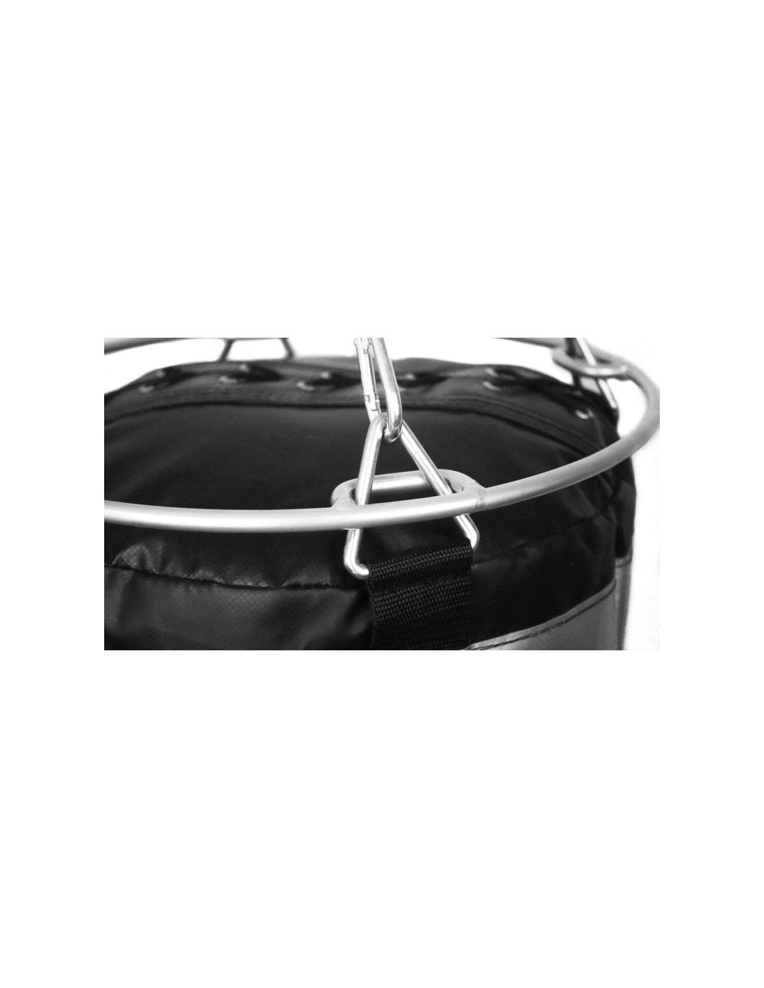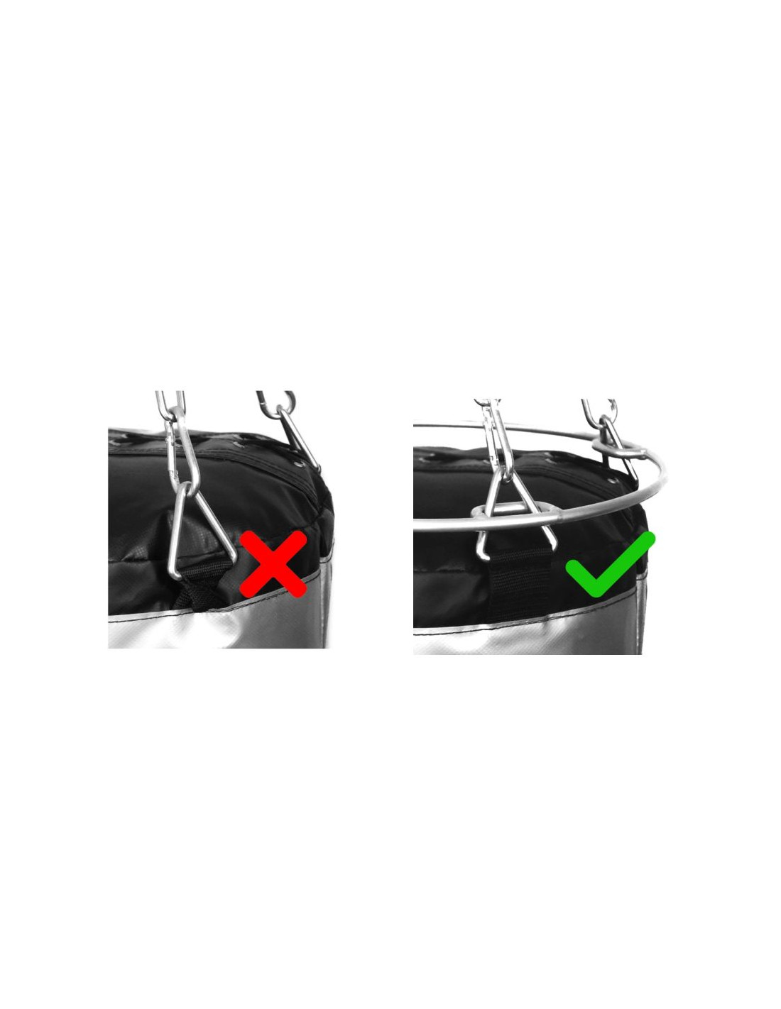 Zastosowanie obręczy zalecane jest szczególnie wtedy gdy ze względu na niskie pomieszczenie treningowe skracana będzie standardowa długość łańcuchów (czym krótsze łańcuchy tym większy nacisk łańcuchów na powierzchnię worka).