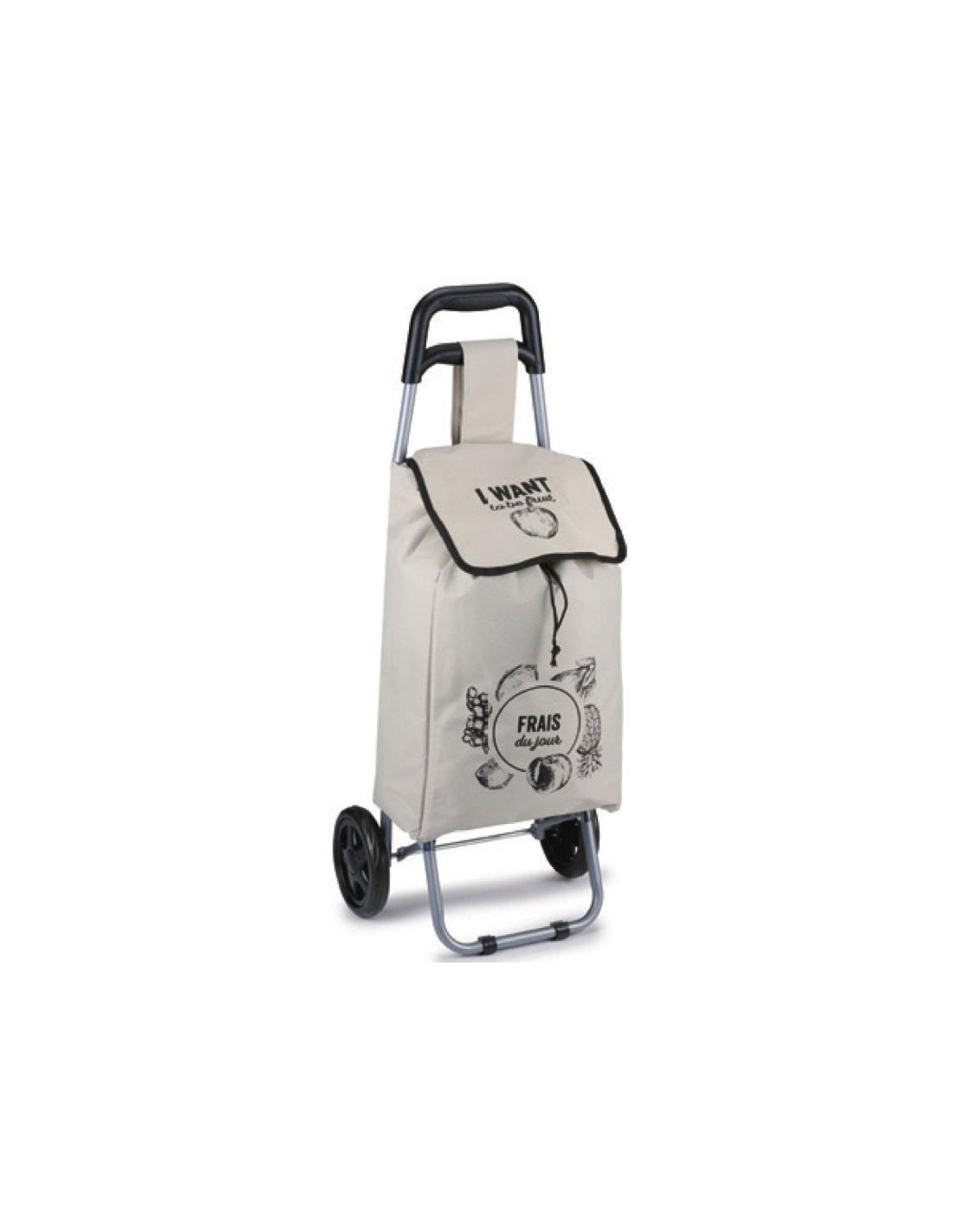 Metalowy stelaż zapewnia wytrzymałość i stabilność podczas transportu nawet cięższych zakupów. Jest zaprojektowany tak, aby pomieścić torby z zakupami, a nawet większe przedmioty, co eliminuje konieczność noszenia ich ręcznie.