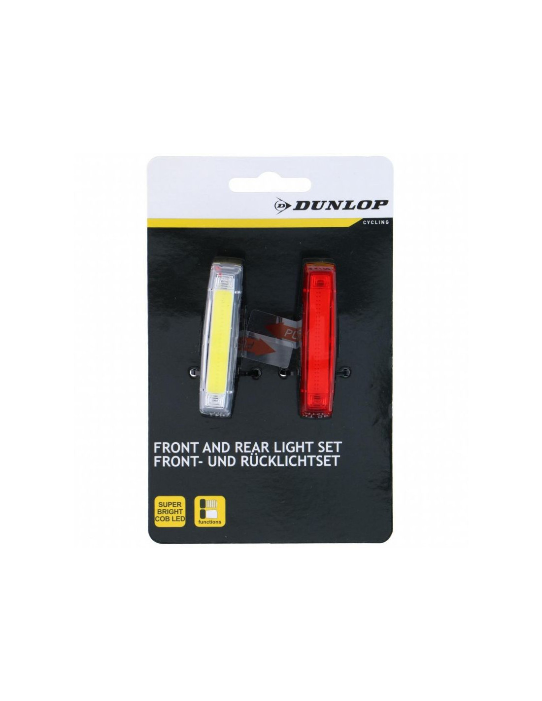 Z zestawem lamp rowerowych LED DUNLOP (przód i tył) każda trasa stanie się bezpieczniejsza i bardziej komfortowa. To mocne, nowoczesne oświetlenie, które zapewnia doskonałą widoczność i stylowy wygląd Twojego roweru.