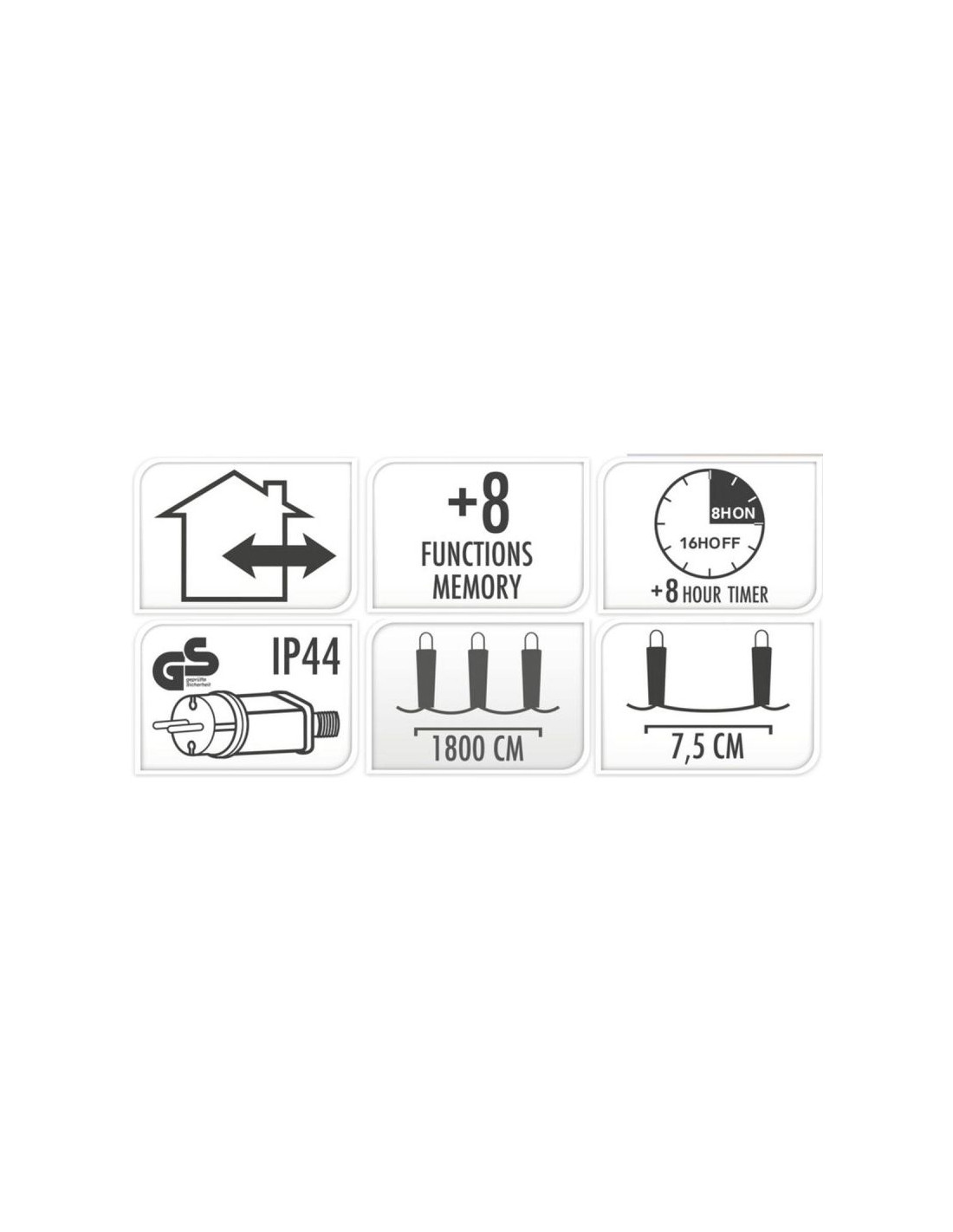 - Odległość miedzy lampkami ok.: 7,5 cm