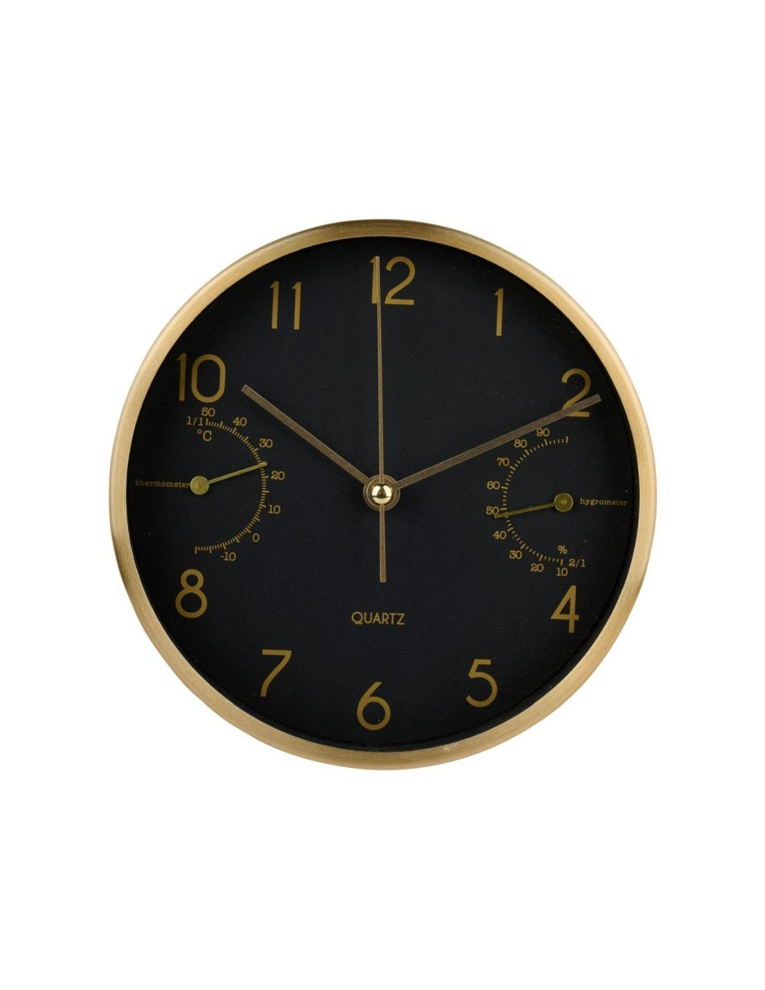 - z cyframi arabskimi wskazującymi każdą godzinę,z termometrem i higrometrem