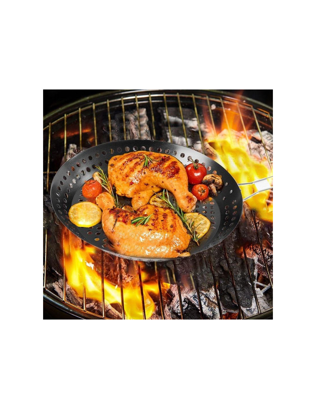 Chcesz zaprosić znajomych na grilla i szukasz odpowiedniego asortymentu? PATELNIA DO GRILOWANIA ZE SKŁADANYM UCHWYTEM NON STICK CZARNA jest idealna do grillowania różnego rodzaju dodatków, warzyw i mięsa!