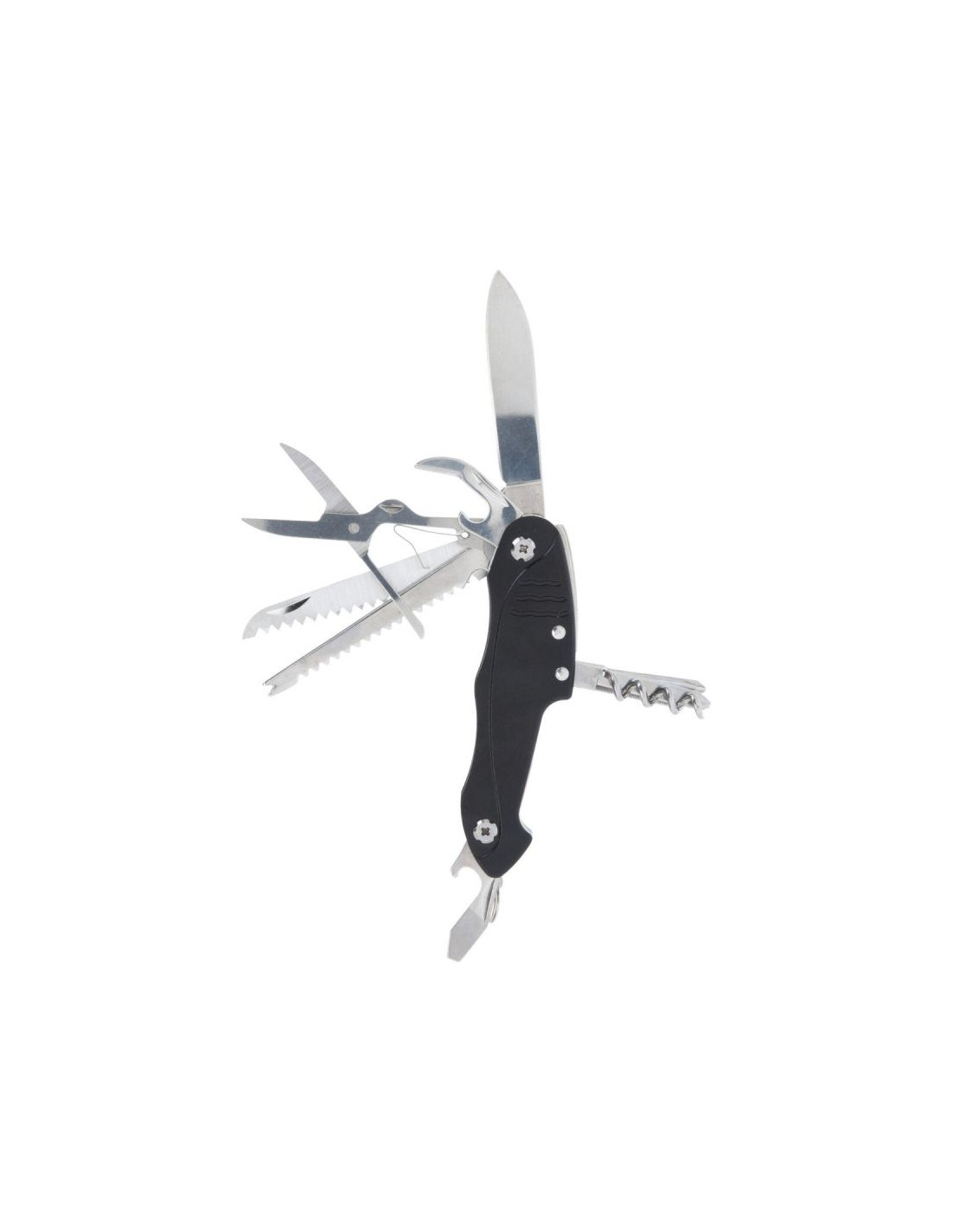 Scyzoryk przyda się np.: do cięcia i oskrobania złowionej ryby, nacinania, przecinania wielu rzeczy oraz materiałów, korkociąg posłuży do otwierania wina lub sprawdzi się również do rozwiązywania supłów. Otwieracz do puszek pomoże Ci otworzyć puszkę, otwieracz do butelek otworzy butelkę, a ich płaskie końcówki posłużą również jako płaski śrubokręt, a śrubokręt krzyżowy - posłuży do odkręcenia śrubek poza tym znajdziesz w nim pilniczek, igła, nożyczki, małą piłę i parę innych przydatnych narzędzi.