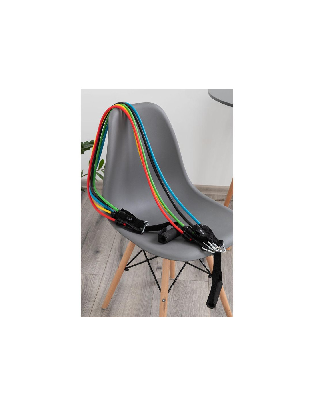 Gumy mają obciążenie od 4,5 kg aż do 22,5 kg, co widać dzięki różnym kolorom i średnicy. Łatwo dopasujesz opór gumy do aktualnych potrzeb treningowych i umiejętności. Używając ich wszystkich jednocześnie, możesz uzyskać obciążenie aż 67,5 kg. Ekspandery: