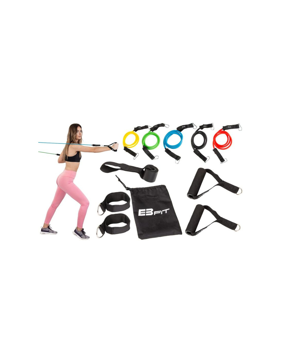 Zestaw EB FIT wykorzystasz doskonale do ćwiczeń dolnej i górnej części ciała. Treningi wymodelują ramiona, klatkę piersiową i plecy. Dwa paski na kostkę służą do wzmocnienia stawów skokowych oraz kolan. Zapięcie na rzep umożliwia dobre dopasowanie do każdego użytkownika.