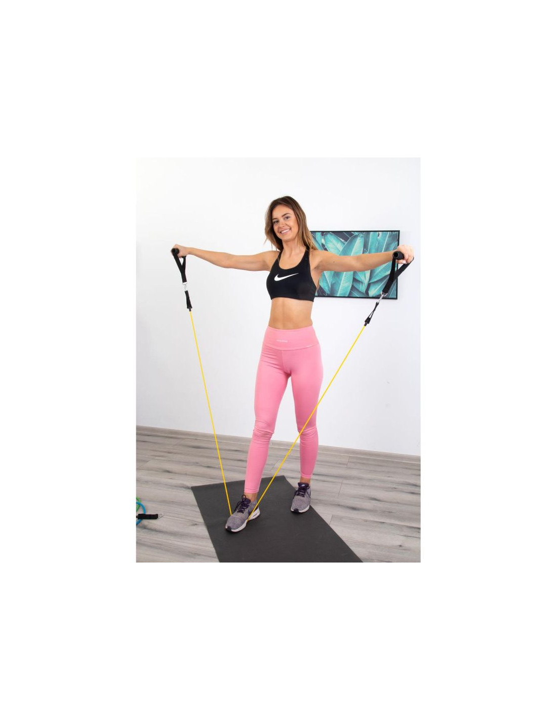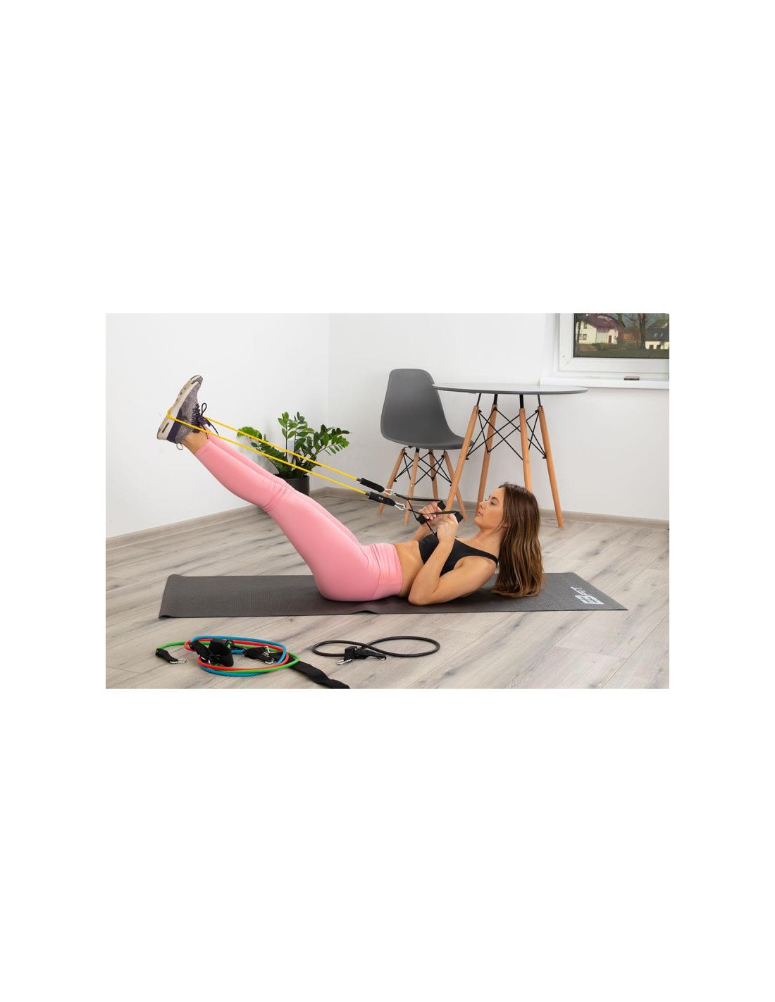 Zestaw wyposażyliśmy w zaczep do drzwi, co pozwoli Ci wykonać wiele nowych ćwiczeń. Mocowanie zaczepu jest proste i szybkie. Umieść kotwicę z pianki nad lub pod drzwiami, zamknij drzwi i zacznij ćwiczenia. Tym prostym sposobem zabijasz rutynę, zwiększasz różnorodność treningu i czerpiesz więcej przyjemności z ćwiczeń.