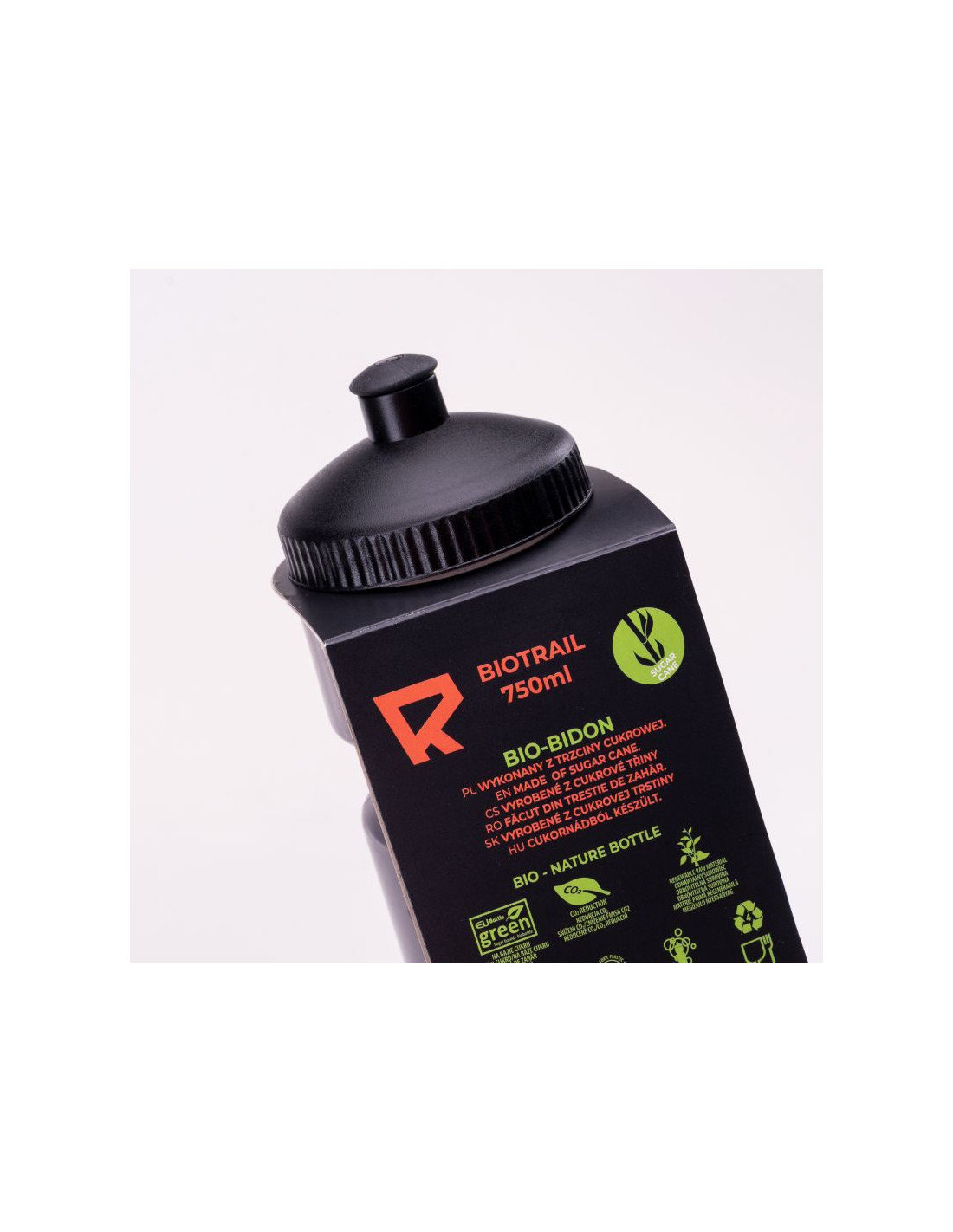 BIDON ROWEROWY POJEMNOŚĆ: 750 ml SKŁAD MATERIAŁOWY: BUTELKA: POLIETYLEN POCHODZENIA ROŚLINNEGO ZAKRĘTKA: POLIETYLEN/POLIPROPYLEN POCHODZENIA ROŚLINNEGO USTNIK: TERMOPLASTYCZNY ELASTOMER SPECYFIKACJA: - SUROWIEC W PEŁNI ODNAWIALNY NA BAZIE CUKRU - MAKSYMALNA TEMPERATURA 30°C - WOLNY OD BPA - MOŻNA MYĆ W ZMYWARCE
