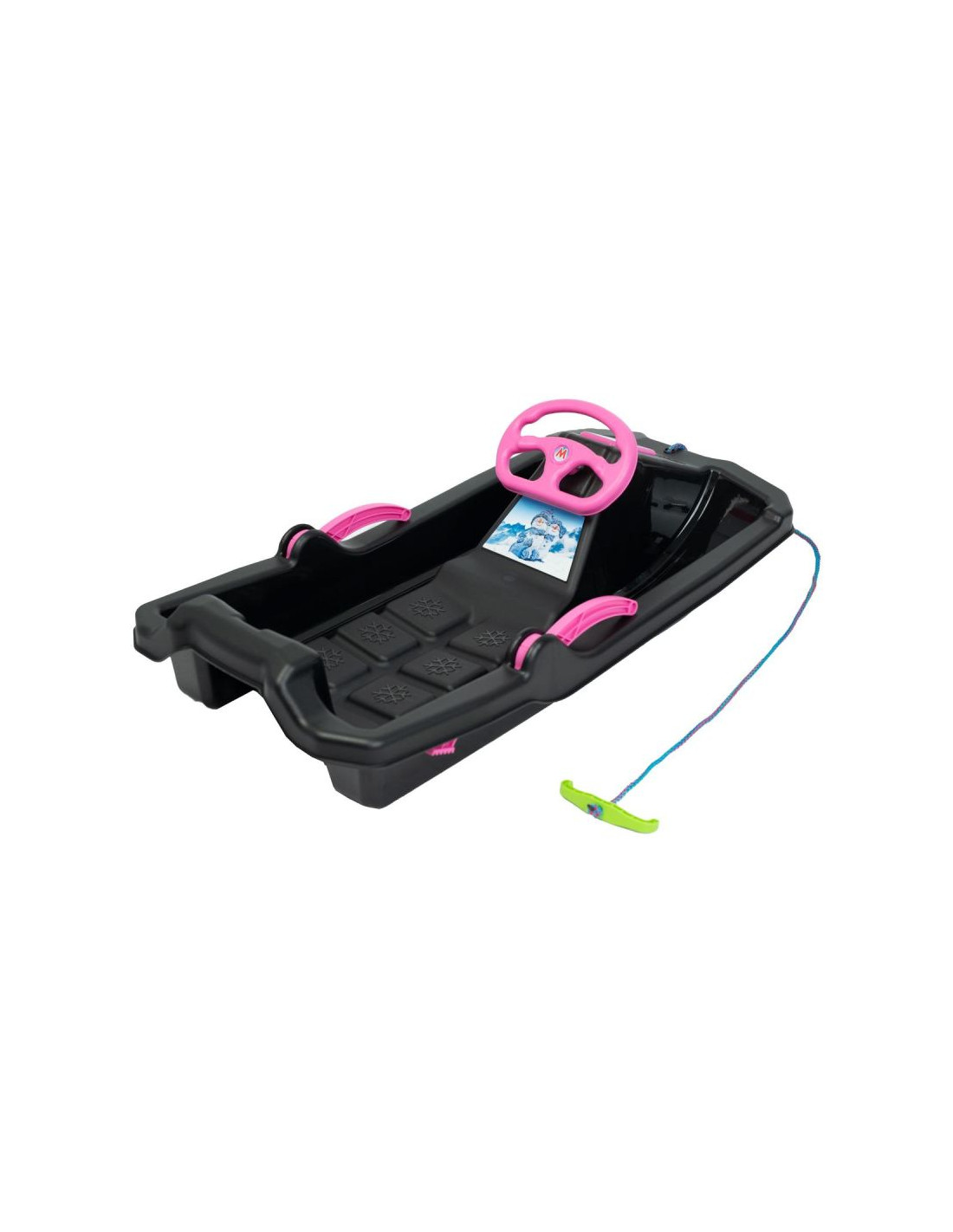 Te sanki to nowoczesny gadżet do zabawy na śniegu, wyposażone w kierownicę, która umożliwia skręcanie w lewo lub prawo. Dzięki niej dziecko może wybrać dowolny kierunek jazdy i omijać przeszkody na trasie .