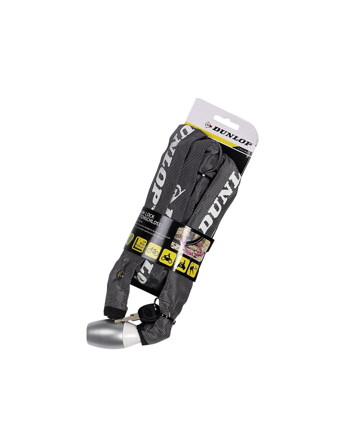 Szukasz dobrego, mocnego zapięcia rowerowego? ZAPIĘCIE ROWEROWE ŁAŃCUCH NA ZAMEK DŁ. 120CM DUNLOP dobrze zabezpieczy twój rower przed kradzieżą, a jego wygląd sprawi, że będzie to Twój jeden z ulubionych gadżetów rowerowych!