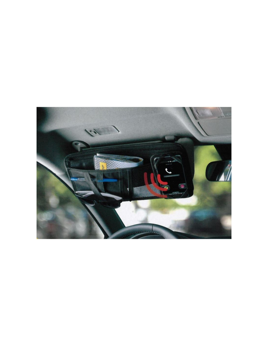 - wyposażony w specjalne gumy ułatwiające montaż na osłonie przeciwsłonecznej
