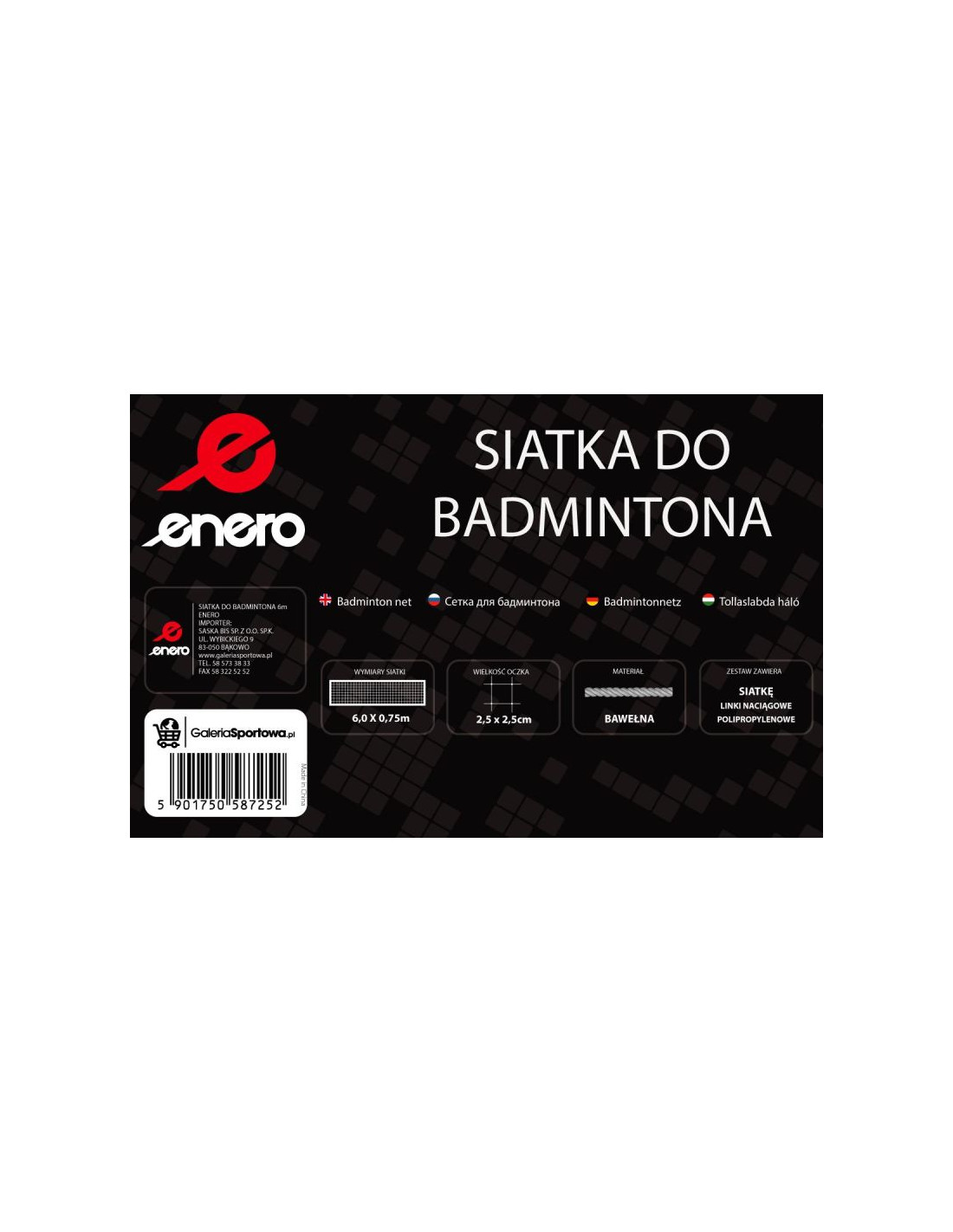 SIATKA DO BADMINTONA 6x0,75M ENERO pomoże Ci wyznaczyć boisko, pozwoli doskonalić swoje umiejętności w grze w lub spędzać wolny czas w ruchu ze znajomymi lub przyjaciółmi!