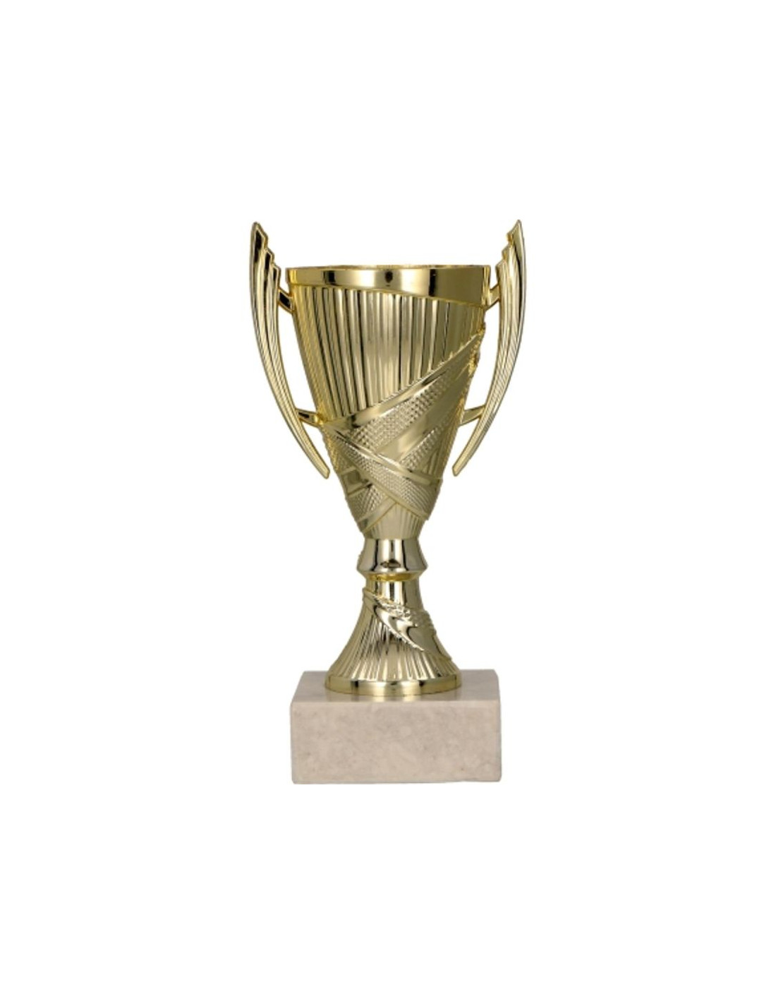 Klasyczny, złoty puchar wykonany z wysokogatunkowego, trwałego plastiku. Elegancki kielich typu conical z wygodnymi uszami. Świetnie sprawdzi się jako puchar dla zwycięzców na różnego rodzaju turniejach i konkursach.