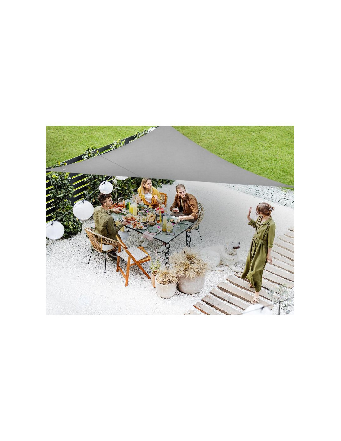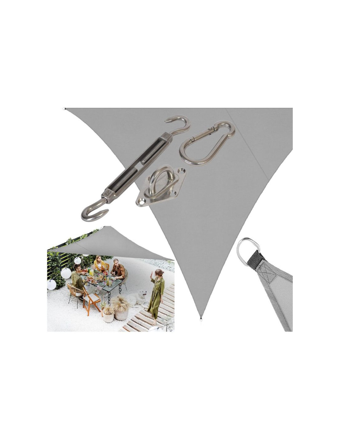 Zestaw pasuje do różnych rodzajów żagli przeciwsłonecznych i może być montowany na ścianach, słupach czy innych powierzchniach.