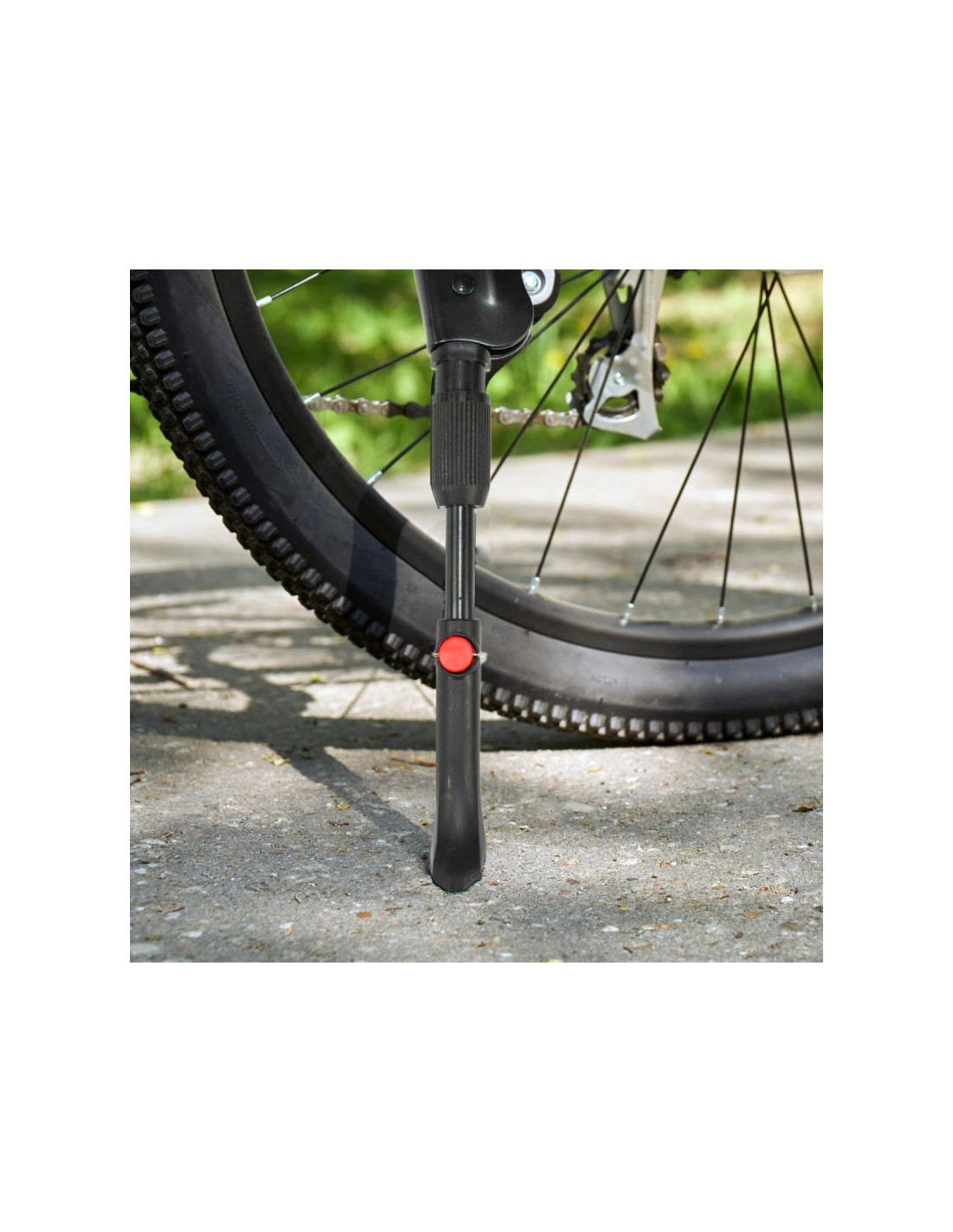 Zamontuj regulowaną stopkę rowerową XQMAX na tył – to niezawodne rozwiązanie dla każdego roweru o średnicy kół od 24 do 28 cali. Wytrzymała, praktyczna i dopasowująca się do różnych modeli – idealna na co dzień i w trasie.