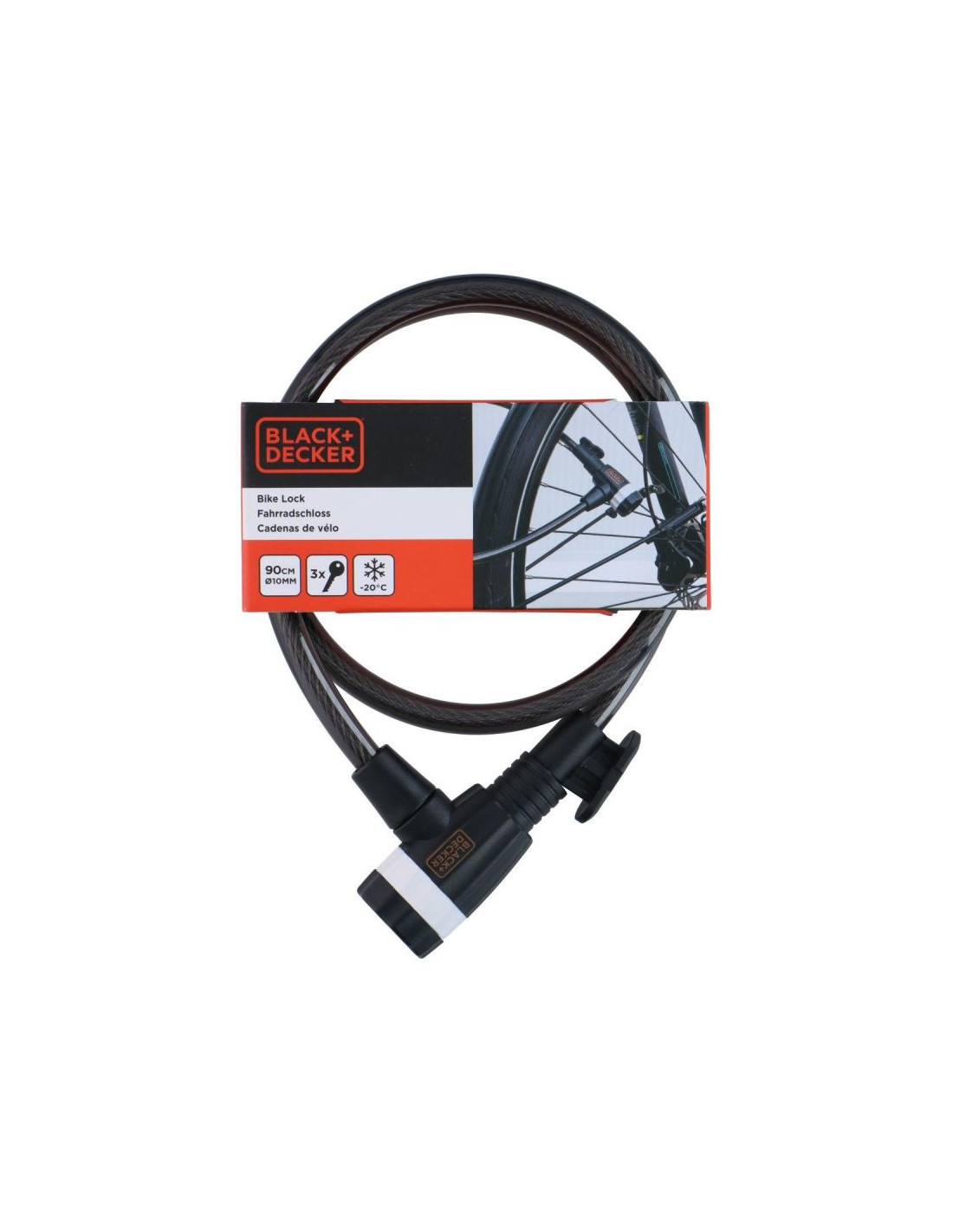 Zapięcie rowerowe linka na zamek 10x900mm z uchwytem black+decker