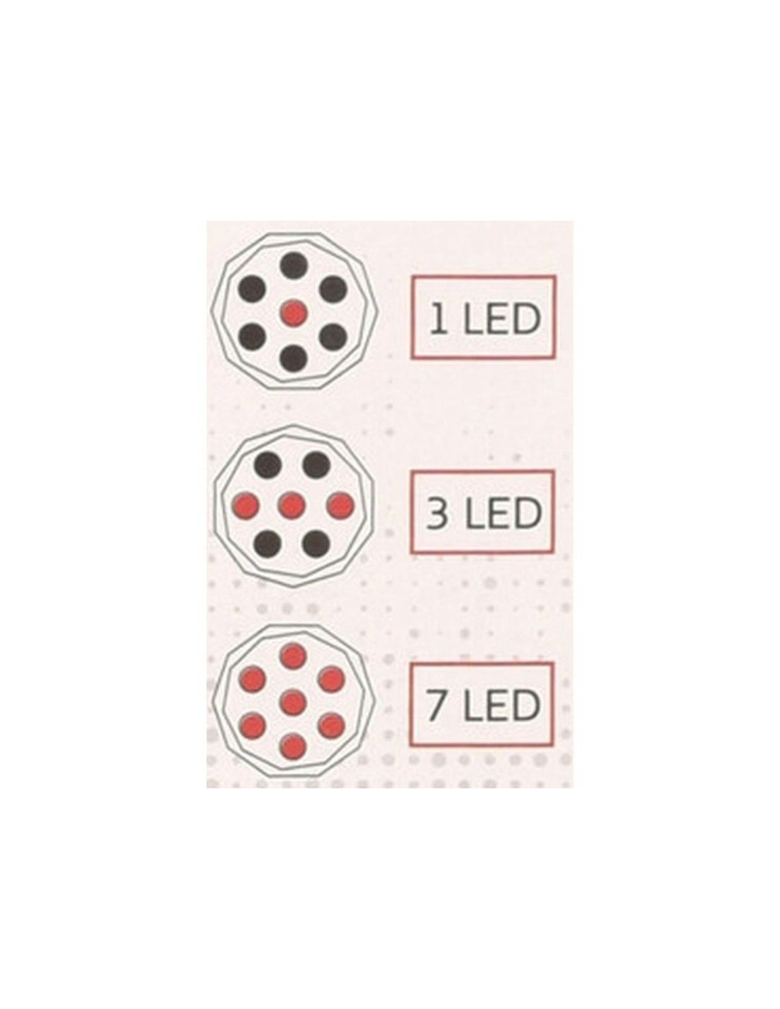 - Zmiana trybów świecenia: tak, 3 - 1 LED/3 LED/7 LED