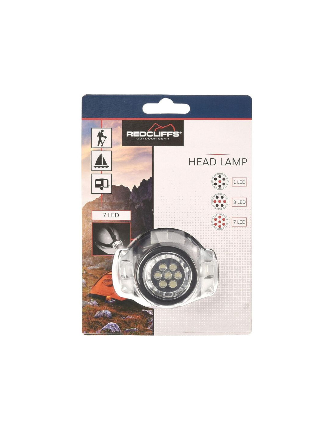LATARKA CZOŁOWA TURYSTYCZNA 7 LED REDCLIFFS to uniwersalna latarka czołowa idealna do biwaków, survivalu, wędrówek, nocnych spacerów, prac w garażu, na działce czy podczas awarii w domu.
