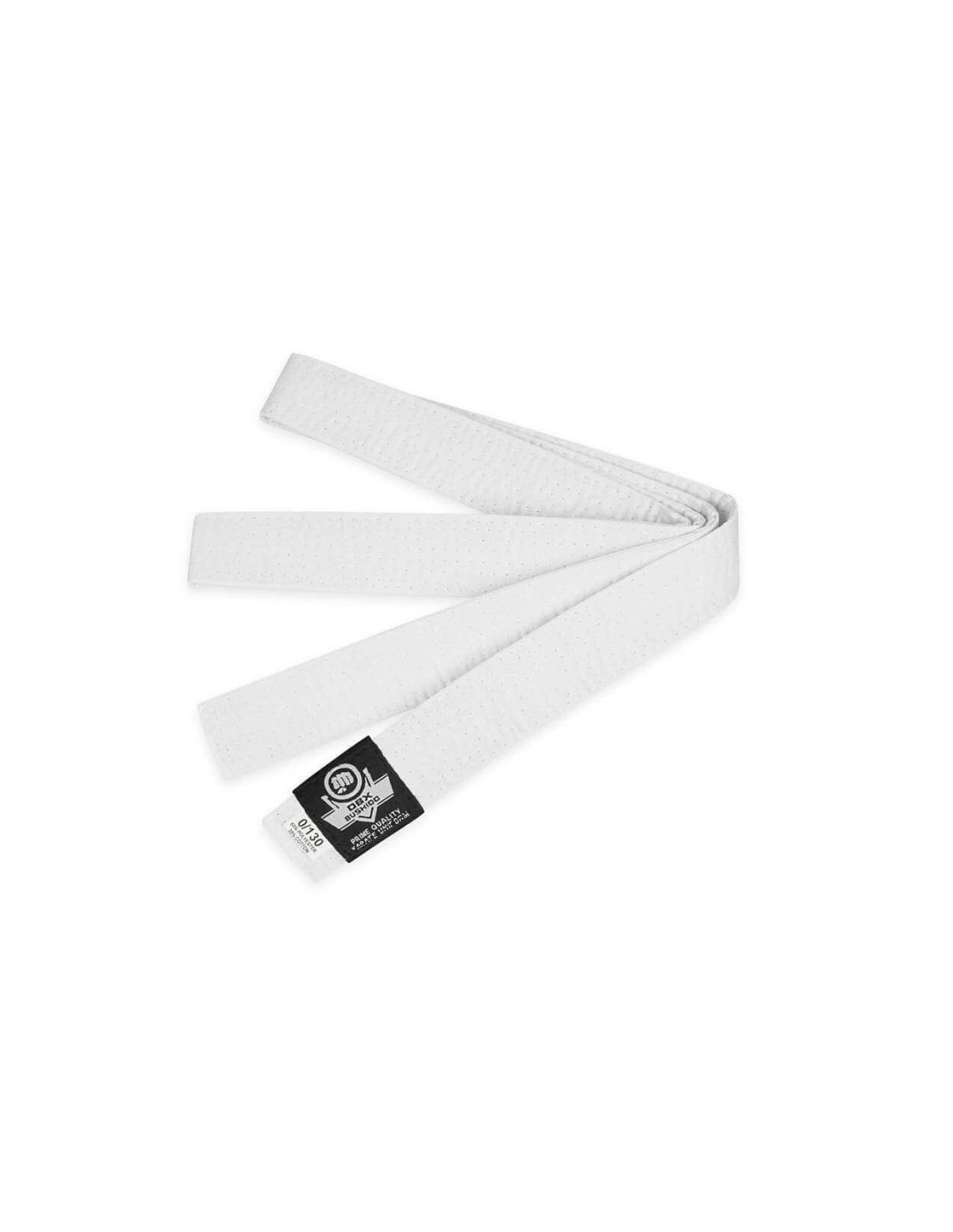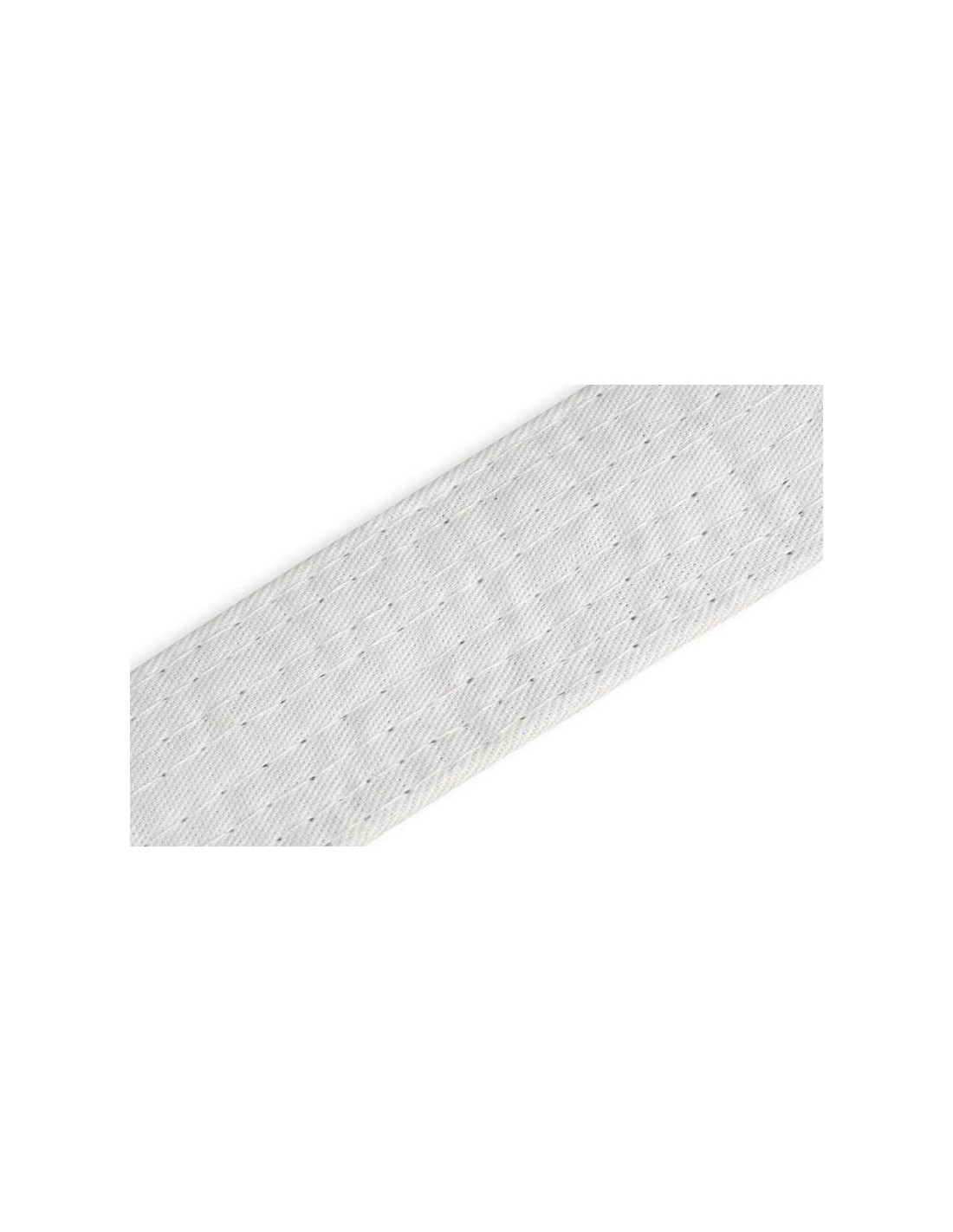 Biały pas do kimon stosowanych w sportach walki wykonany z materiału stanowiącego mieszkankę poliestru i bawełny zapewniającą odporność na przetarcia i rozerwania.