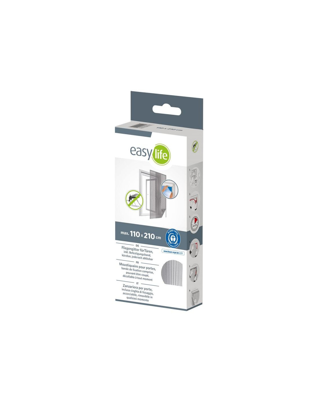 MOSKITIERA DRZWIOWA 2X60X210 OD EASY LIFE MAKO to skuteczne rozwiązanie, które chroni przed niechcianymi owadami jednocześnie przepuszczając powietrze. Możesz ją indywidualnie dopasować do wymiaru drzwi (wystarczy, że przytniesz materiał) i zamontować na dopasowanym pasku mocującym dołączonym do zestawu. Dzięki mocowaniu za pomocą taśmy samoprzylepnej zamontujesz ją szybko bez wiercenia i wkręcania, czyli bez pozostawiania śladów na ramie okna. Produkt wykonany jest z wytrzymałej siatki poliestrowej oraz mocnej taśmy odpornej na wiatr czy deszcz.