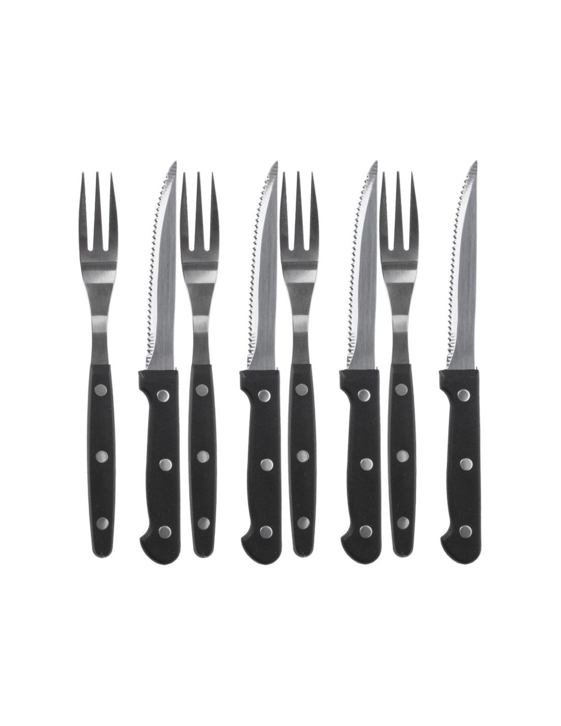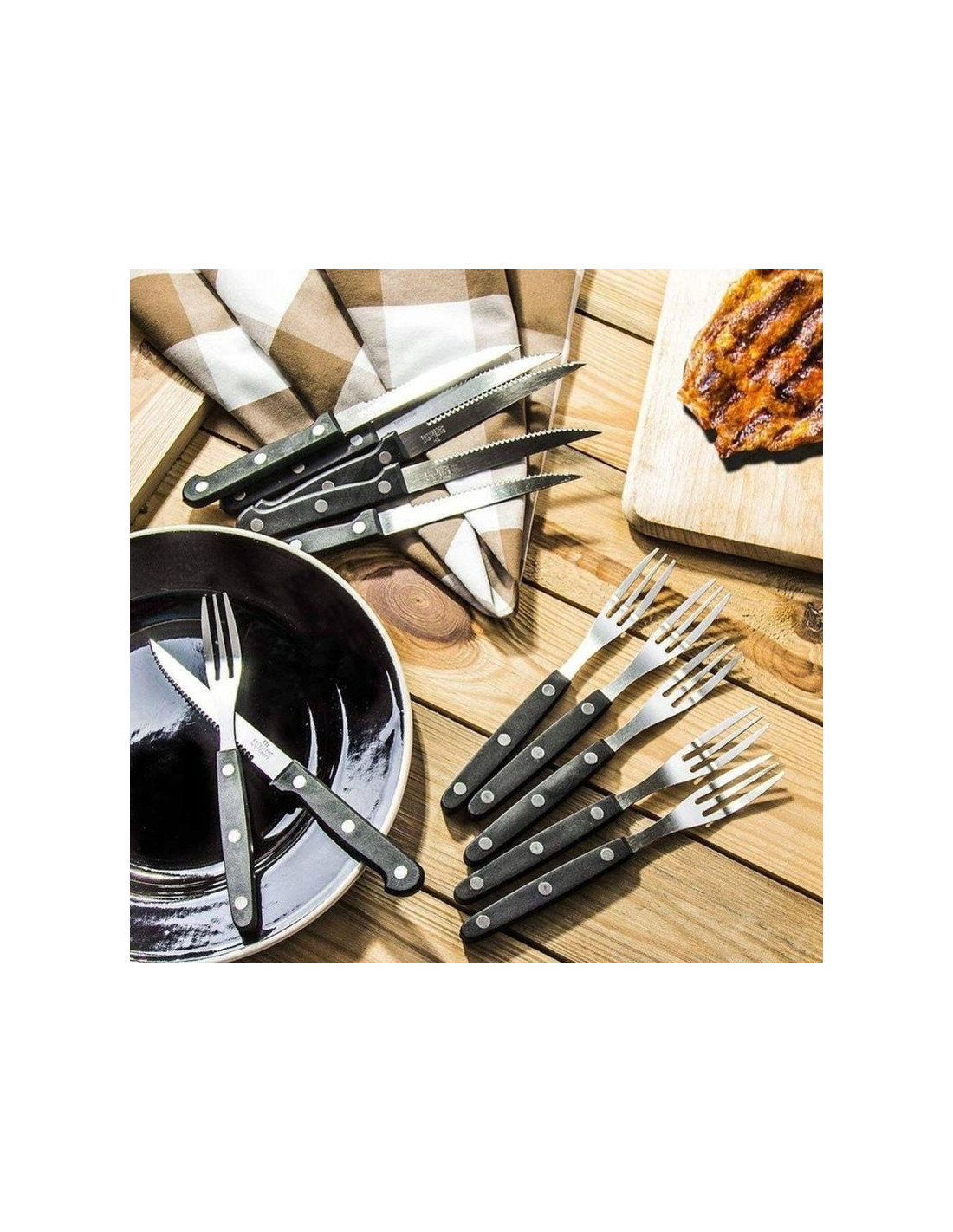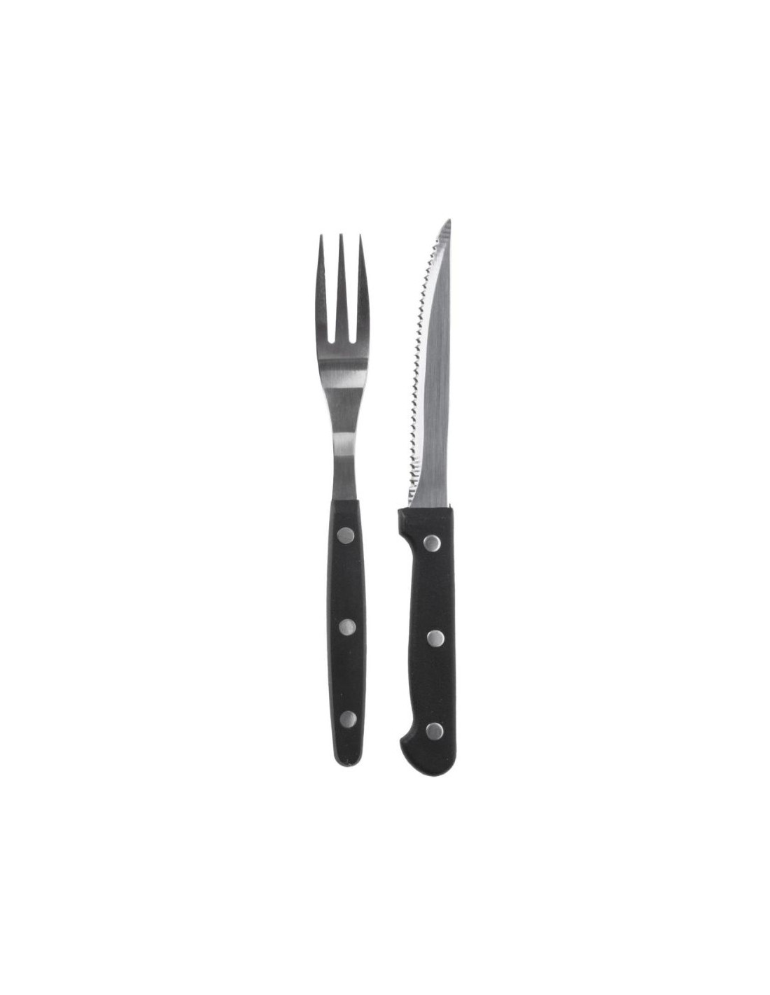 Solidne uchwyty z 3-punktowym nitowaniem ze stali stabilnie leżą w dłoni, są idealne do spożywania steków, pizzy, burgerów i potraw z grilla.