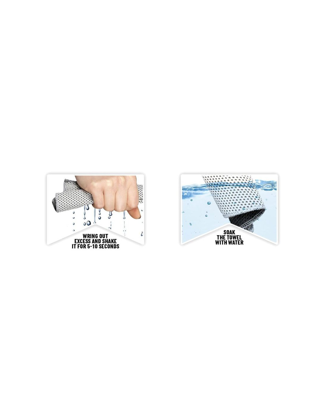 Jego użycie jest bardzo łatwe, wystarczy zamoczyć ręcznik w zimnej wodzie, wycisnąć i strzepnąć przez około 5-10 sekund. Efekt chłodzący utrzyma się do 2 godzin.