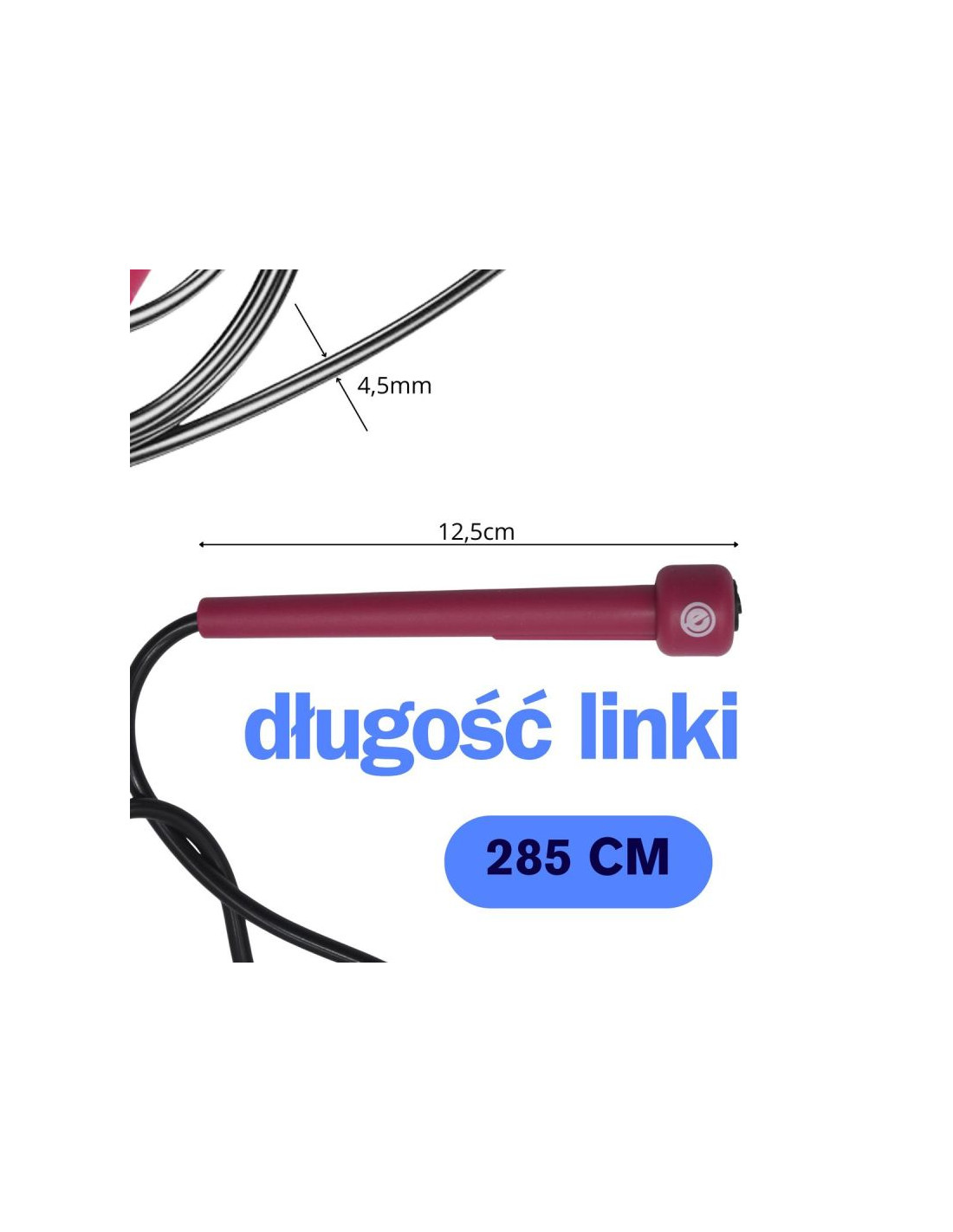 - Długość maksymalna linki (bez uchwytów) ok.: 285