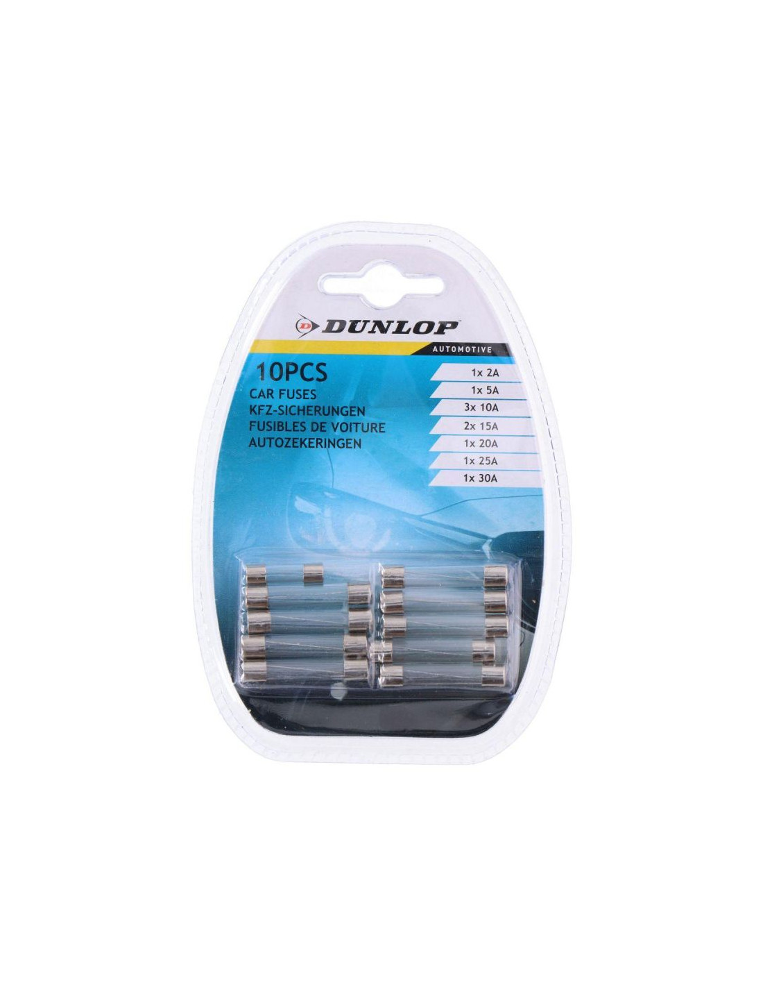Szukasz bezpieczników samochodowych? Zaopatrz się w zestaw szklanych bezpieczników samochodowych 10 szt. DUNLOP