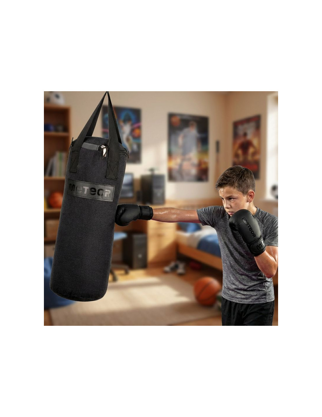 Dla dzieci – zestaw bokserski Meteor został zaprojektowany z myślą o młodszych sportowcach. Właściwości zarówno worka, jak i rękawic pochłaniają siłę uderzenia, umożliwiając podnoszenie kompetencji bokserskich już od wczesnego dzieciństwa.